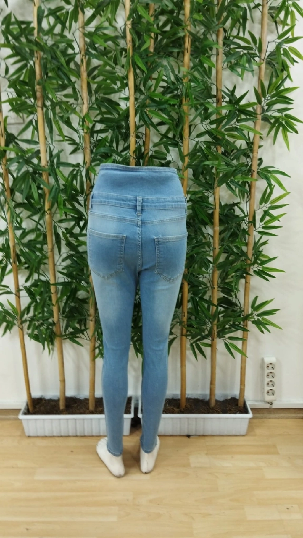 Kadın Yüksek Belli önden Düğmeli Yırtık Detaylı Kot Pantolon
