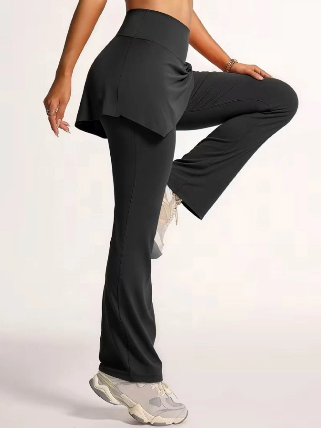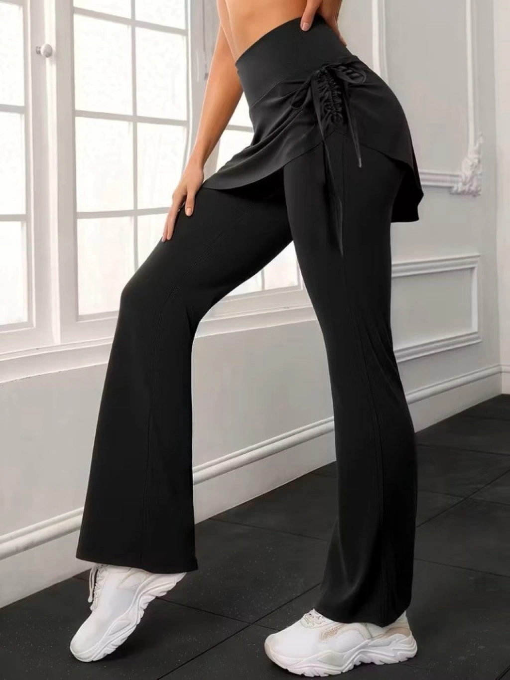 Kadın Yüksek Belli Yandan Büzgülü Paçaya Doğru Geniş Dalgıç Tayt