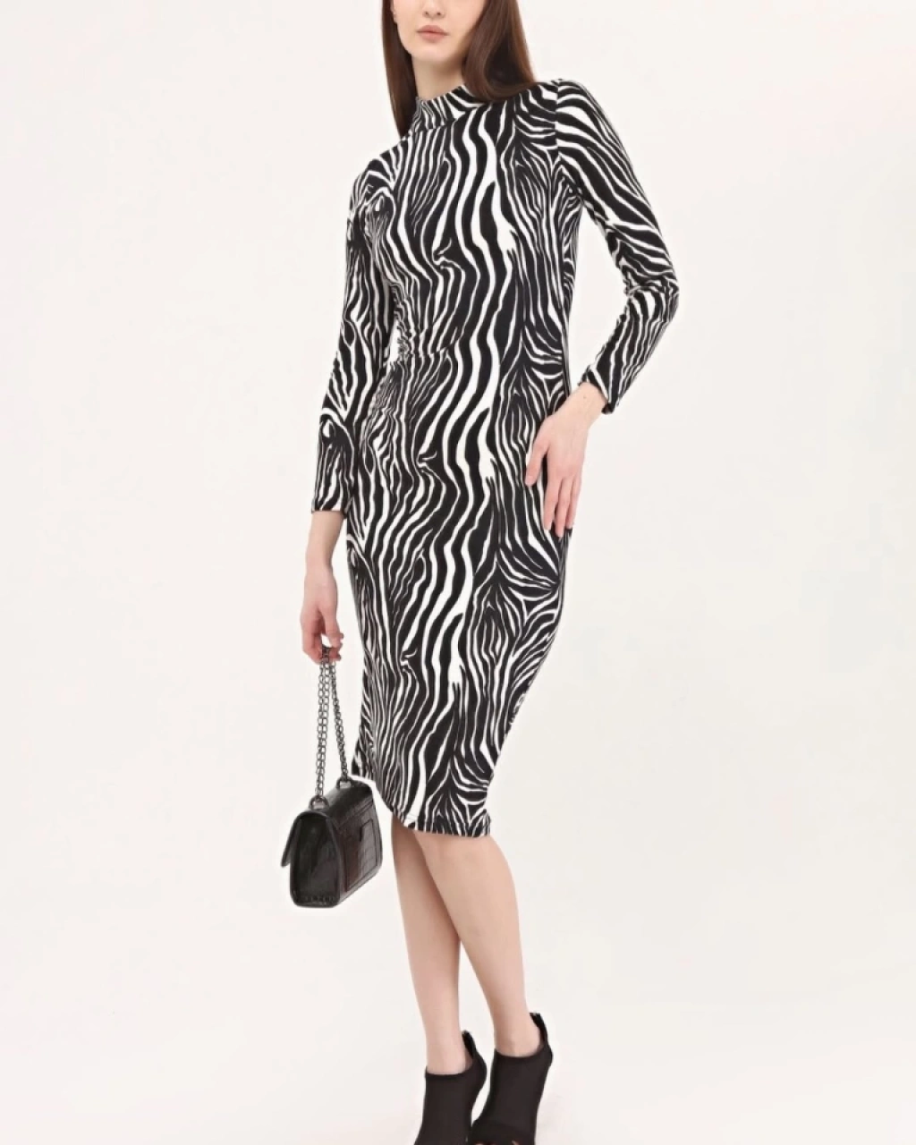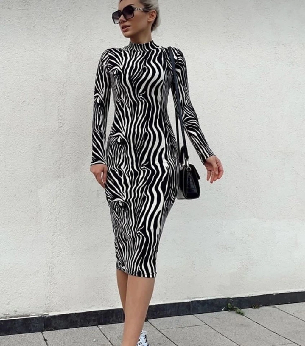 Kadın Zebra Desen Süet Kumaş Fırsat ürün Midi Boy Elbise
