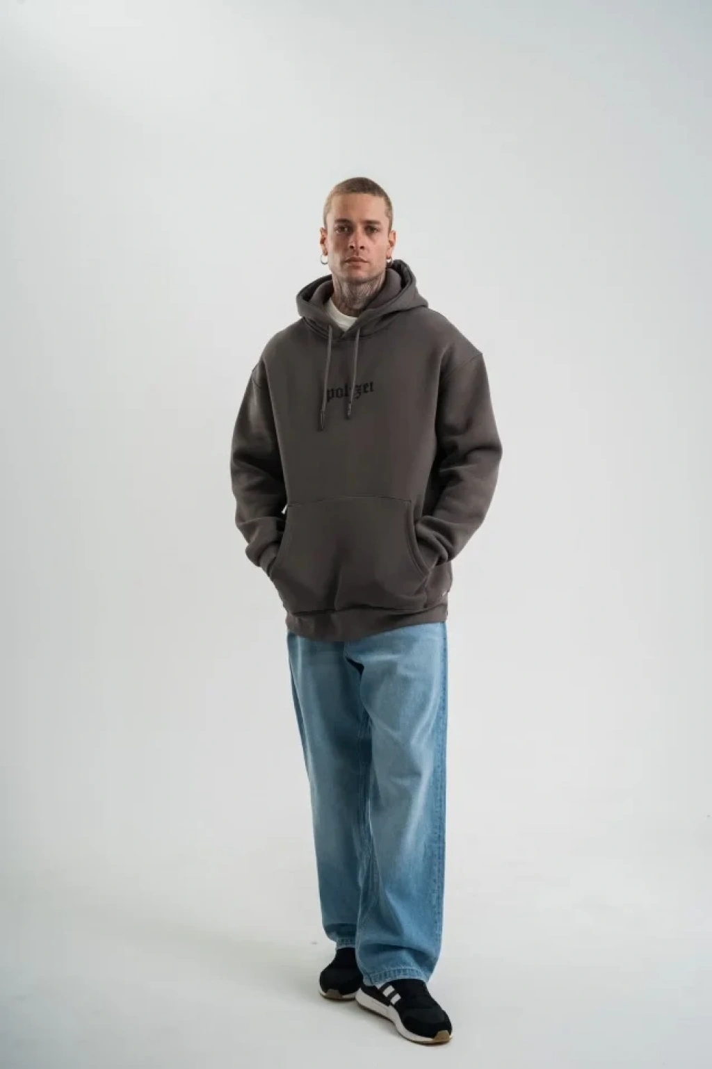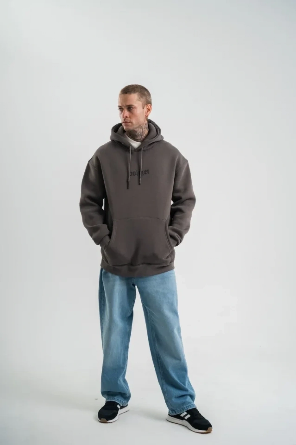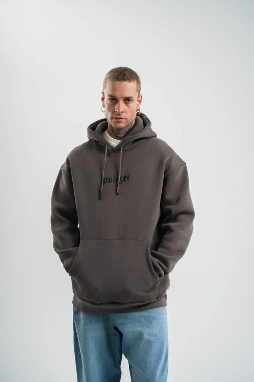 Kapşonlu Double Oversize Dijital Patchli weathirt Füme