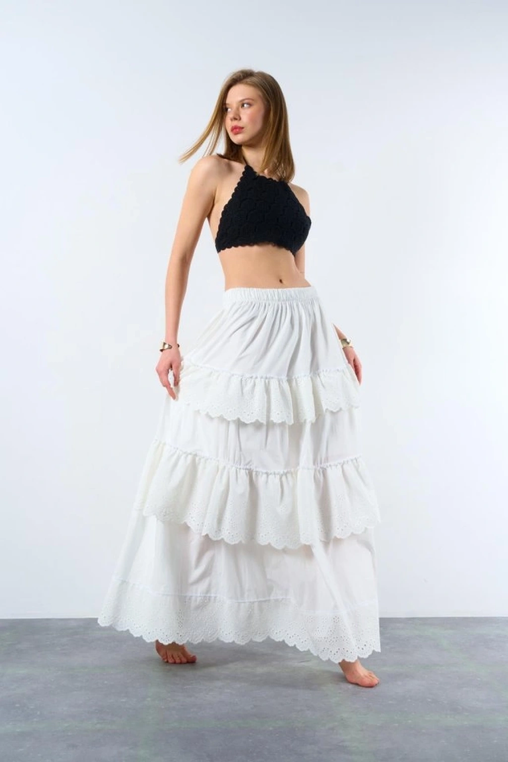 Modelin Ölçüleri: Boy:165, Kg:55, Göğüs:90, Bel:72, Kalça: 100