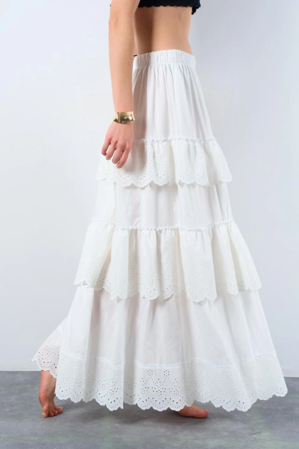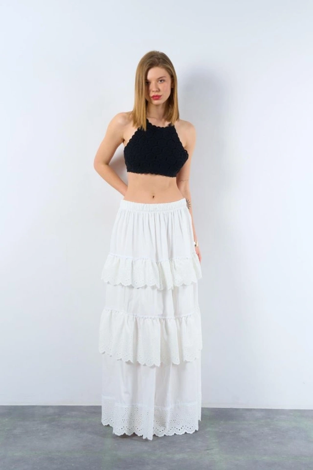 Katlı Pileli Etek - Ekru