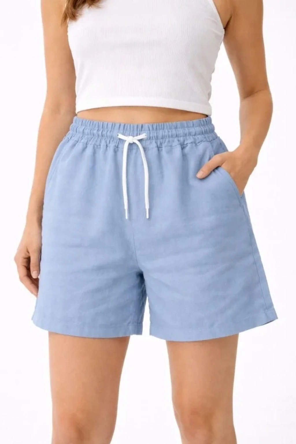 Keten Kumaş Cepli Rahat Kesim Bel astikli Şort avi