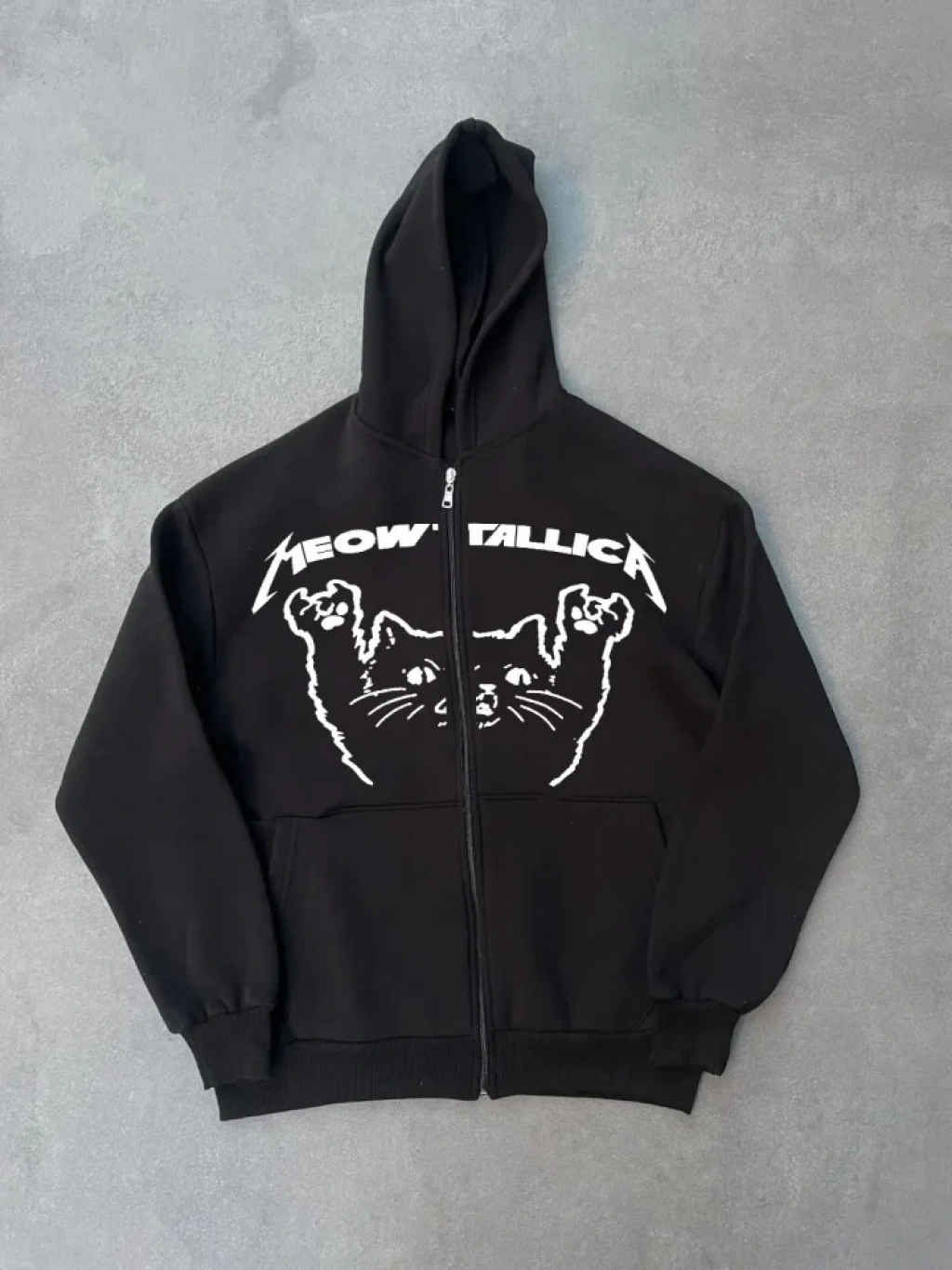 Kışlık Baskılı Fermuarlı Kapüşonlu Hırka - Siyah
