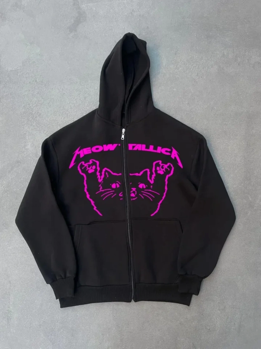 Kışlık Baskılı Fermuarlı Kapüşonlu Hırka iyah