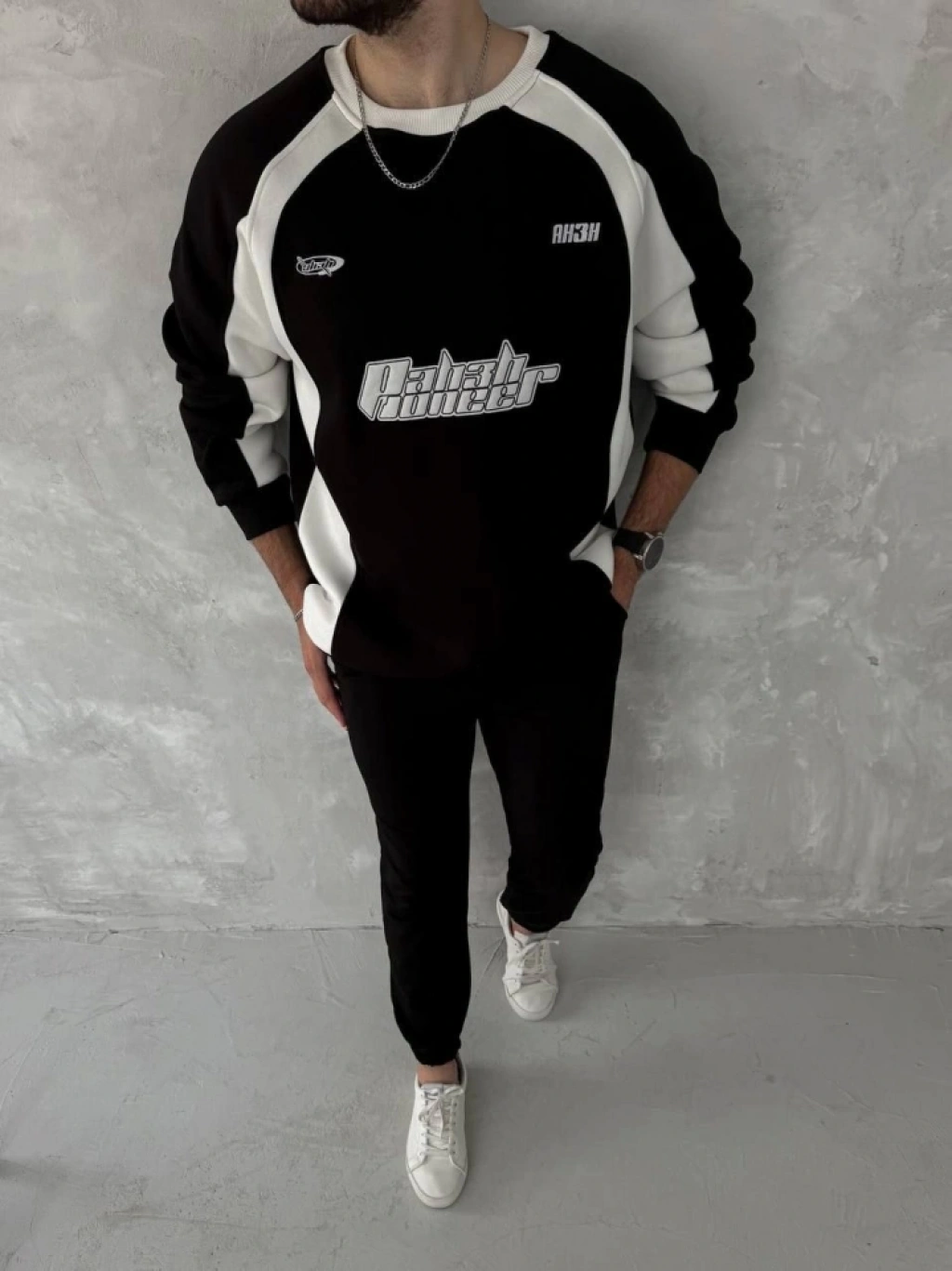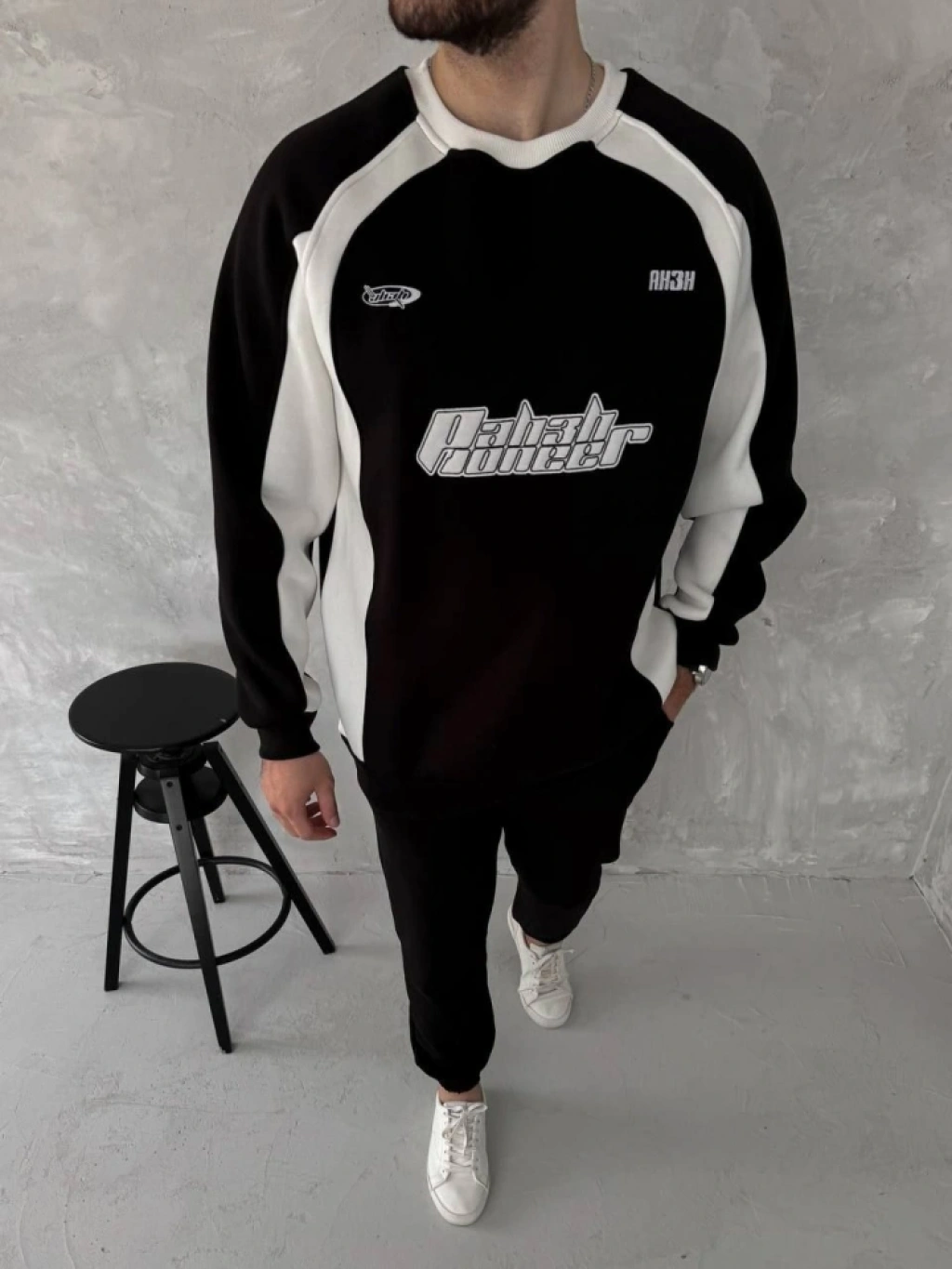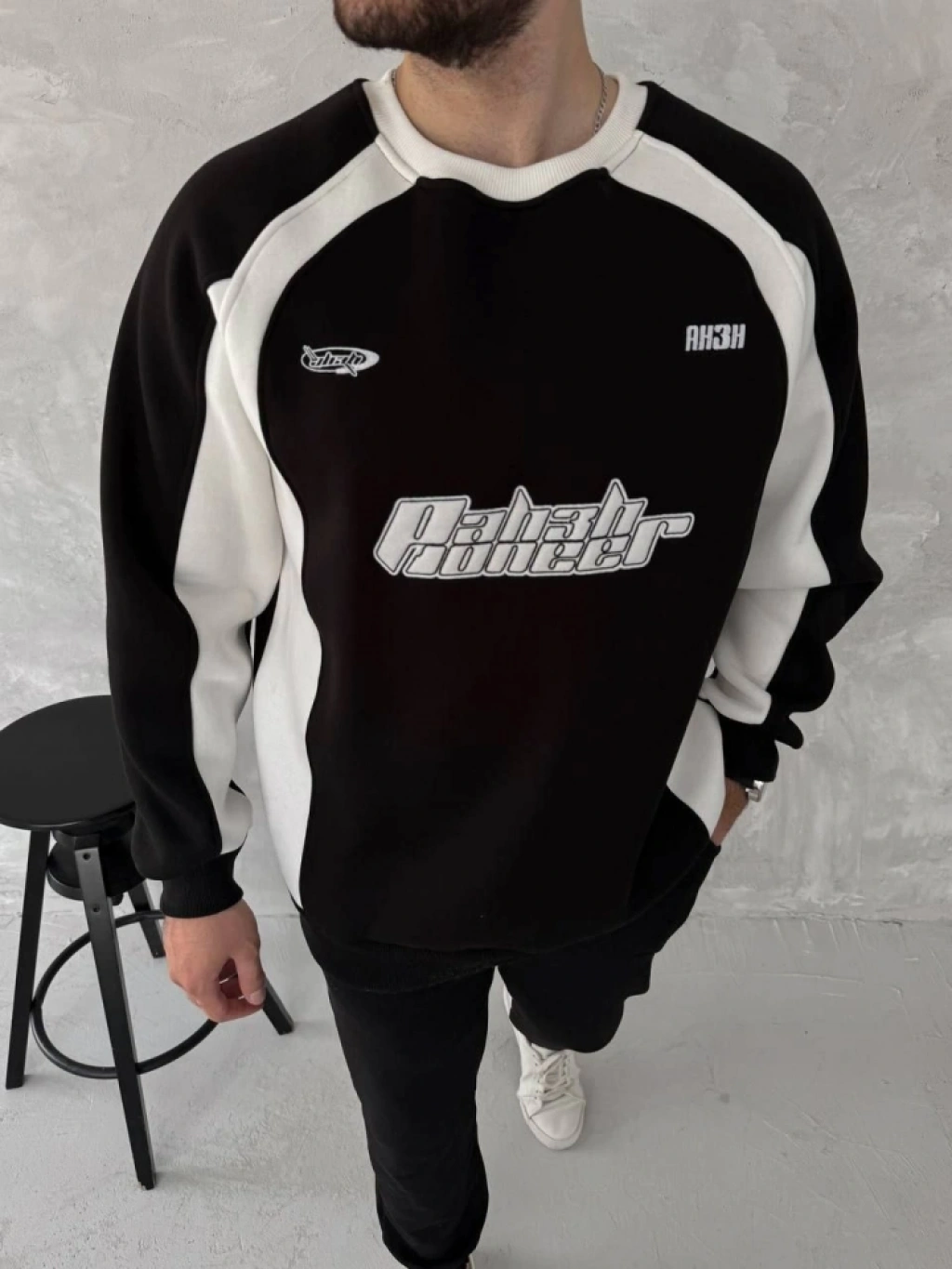 Erkek Patlı Yaka Üç İplik Pamuklu weatshirt Double Oversize Rahat Kalıp Günlük Kullanım avi