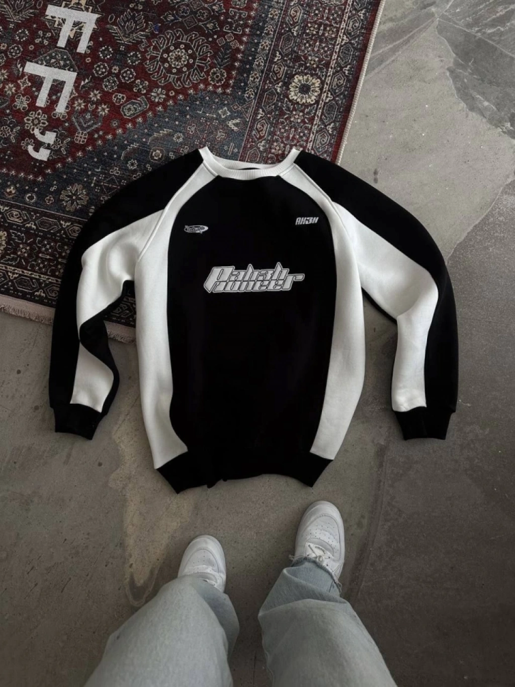 Kışlık Nakış İşlemeli Bisiklet Yaka Parçalı weathirt iyah