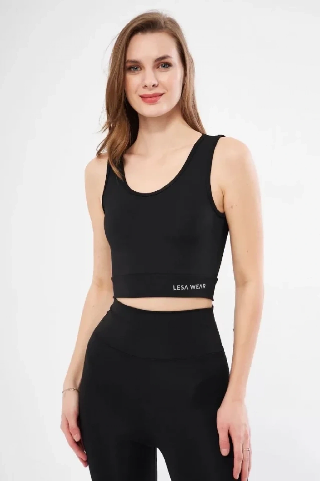 Kolsuz Dalgiç Baskılı Crop - Siyah