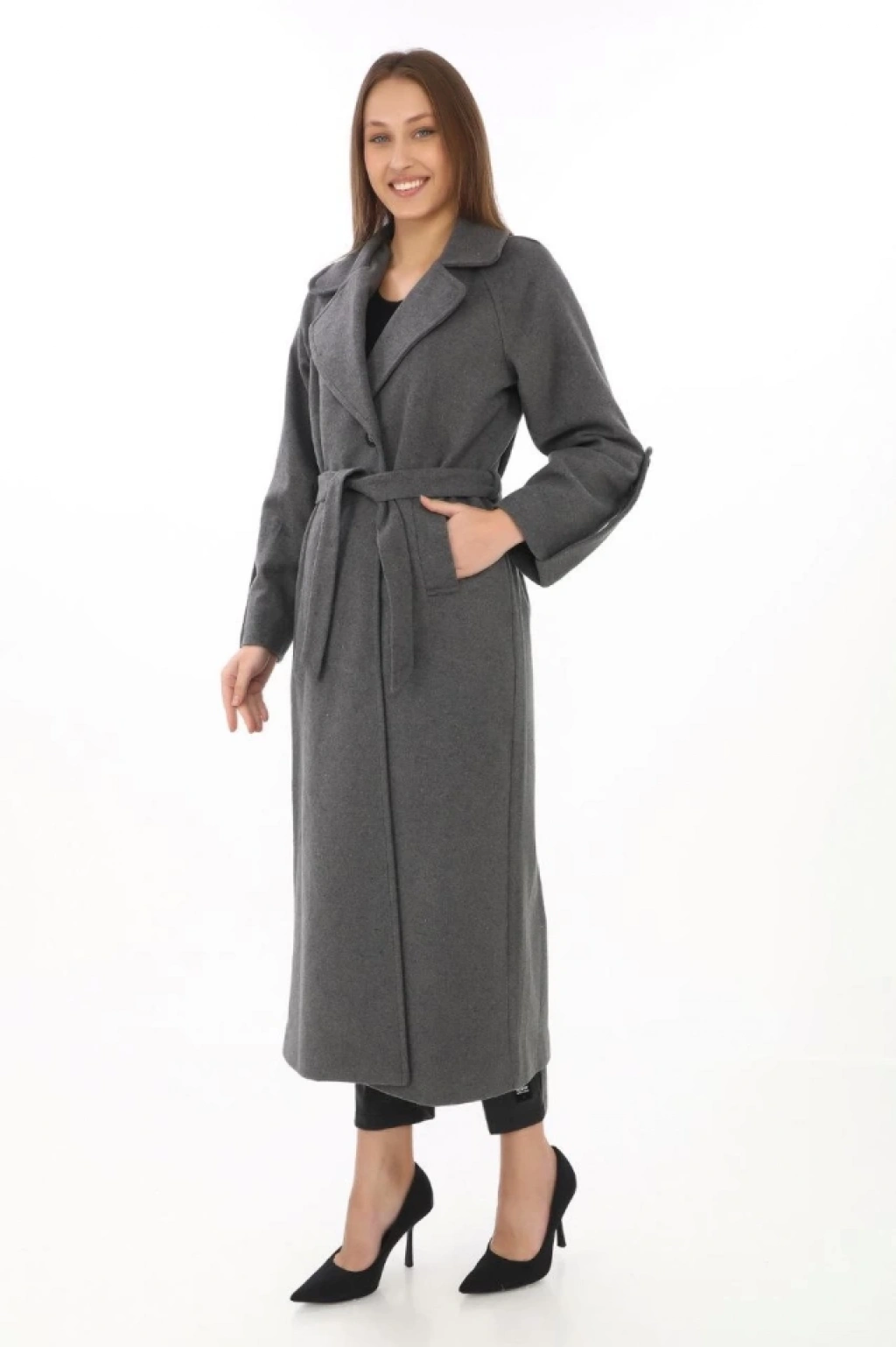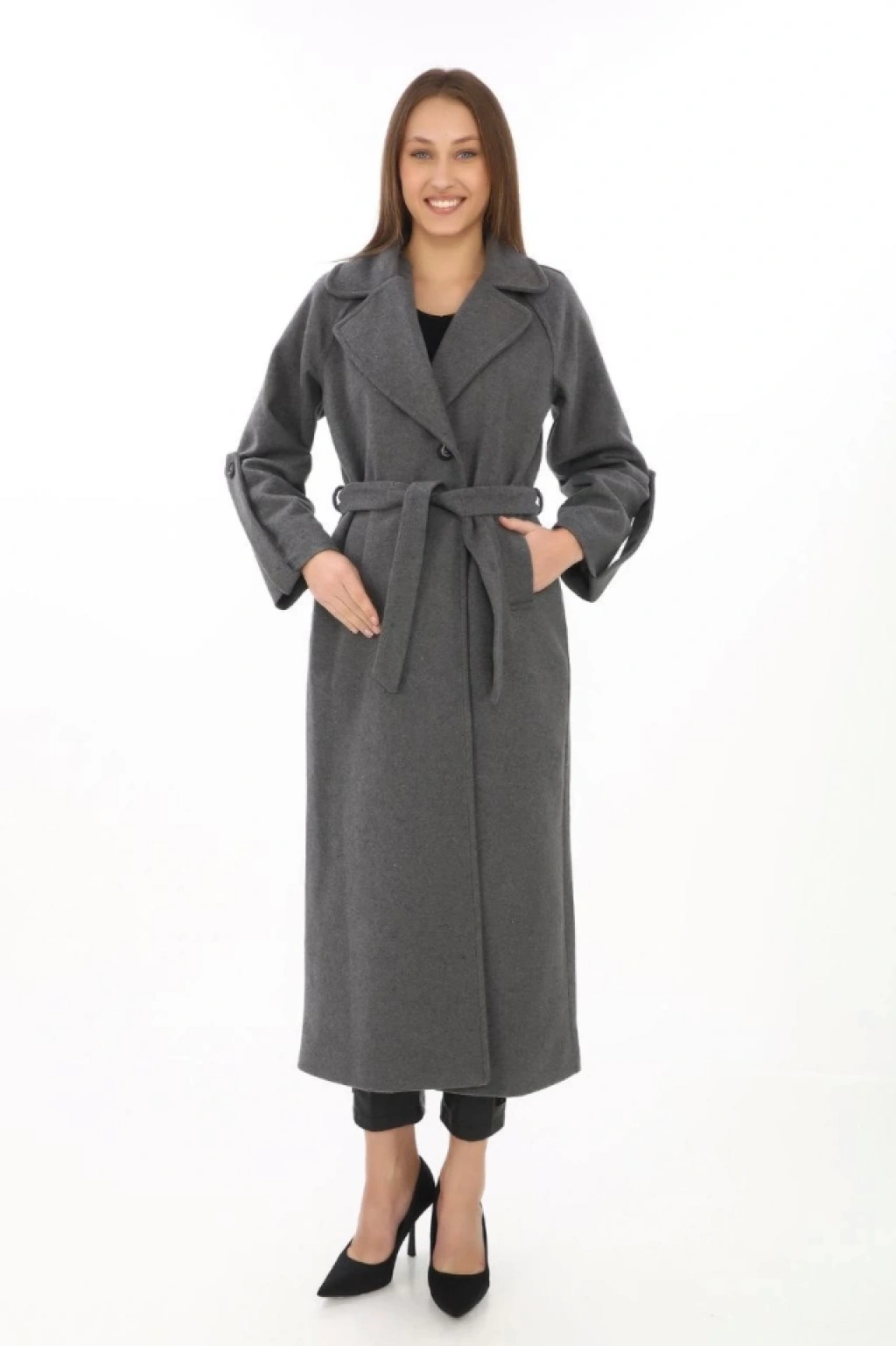 Kolu Apoletli Astarlı Kaşmir Kaşe Kaban Füme