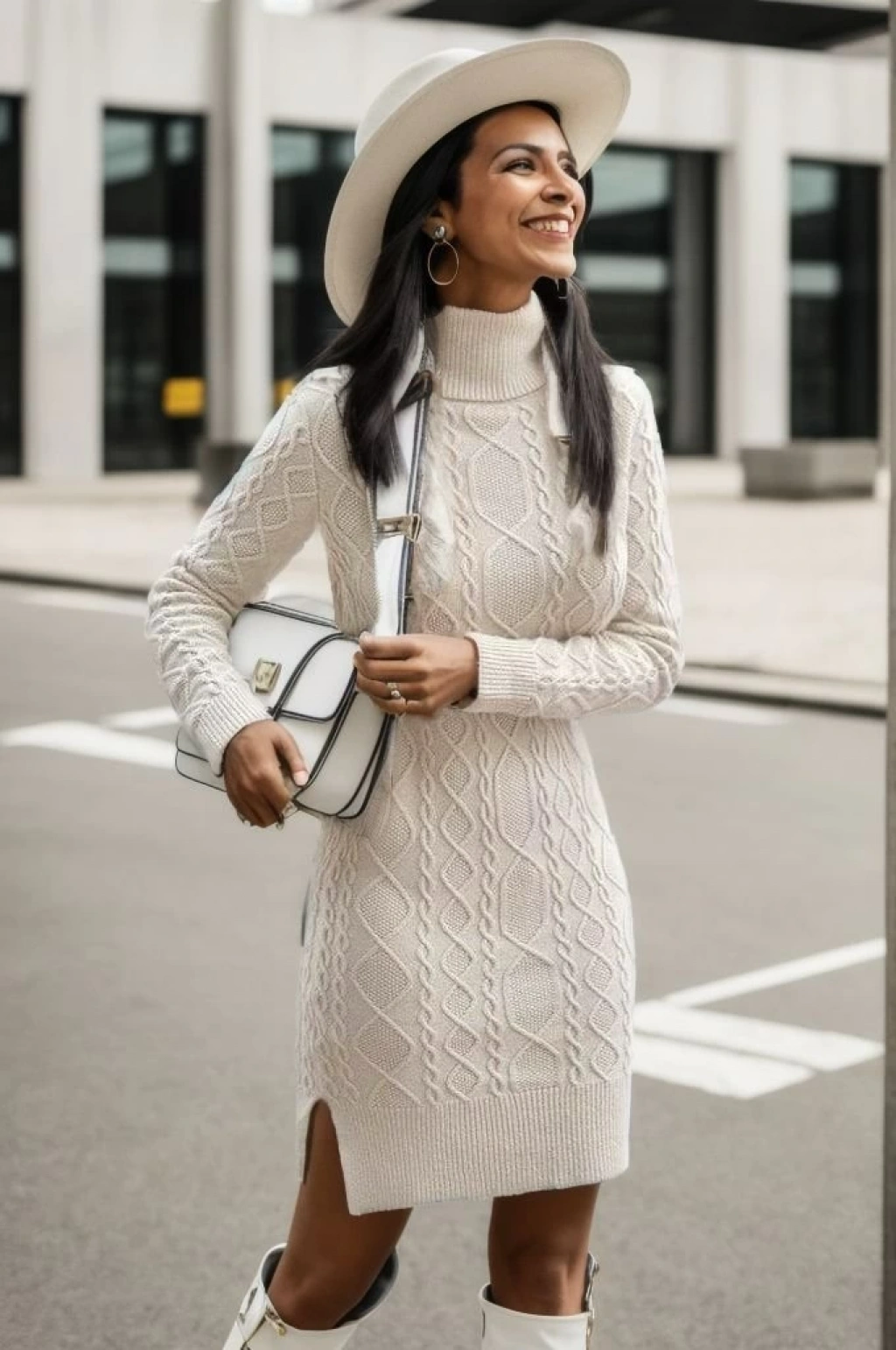 Loren Yünlü Motifli Midi Boy Triko Elbise