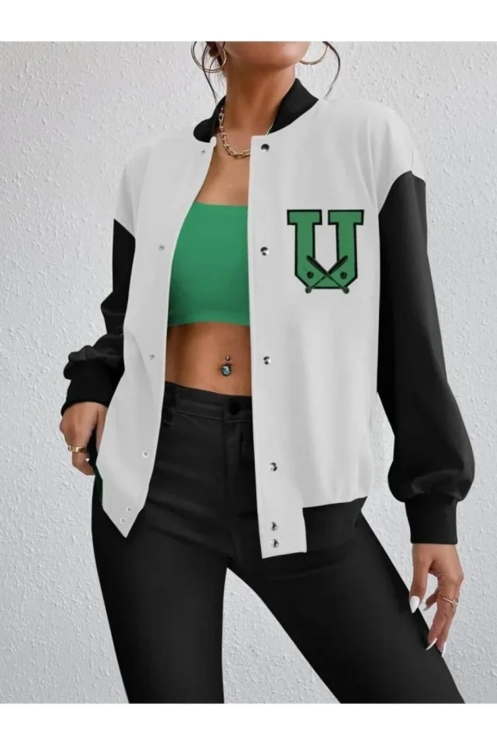 Nakışlı İki İplik Kolej Ceket - Beyaz