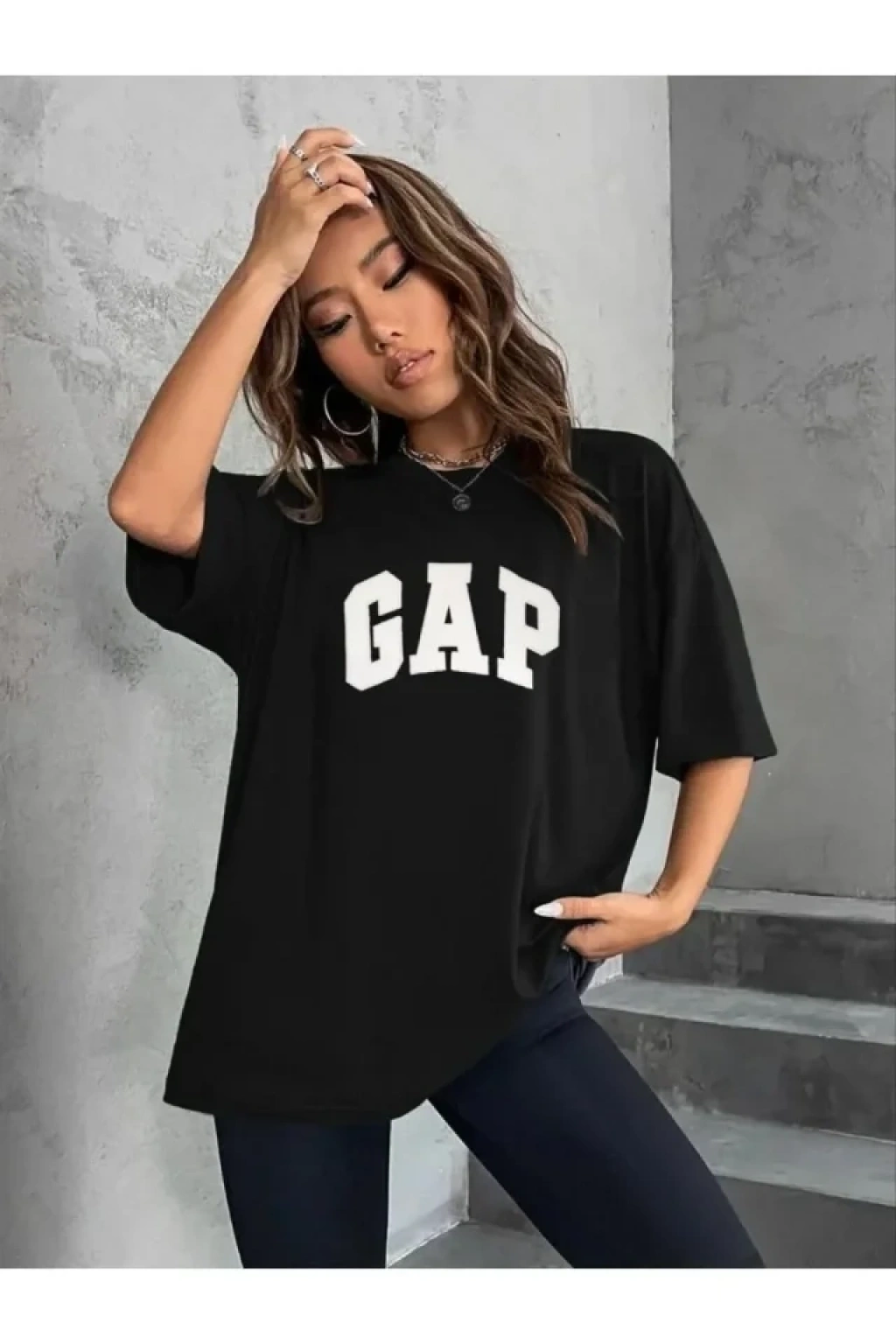Nakışlı Oversize Penye T-Shirt - Siyah