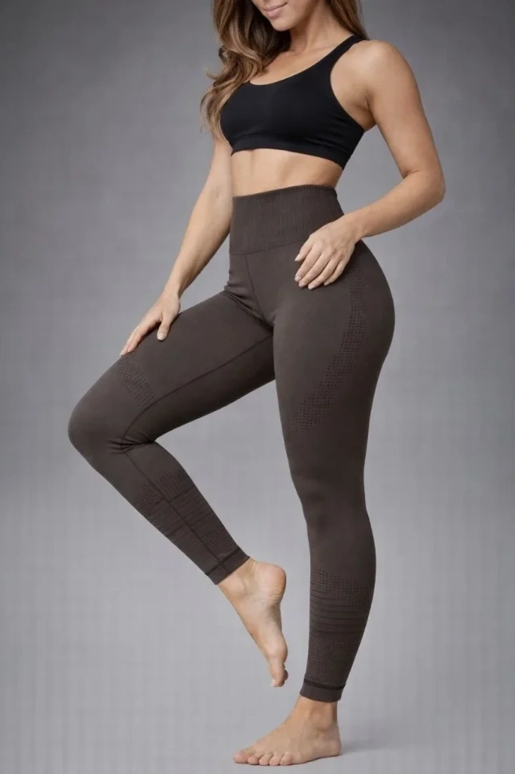 Nonofit Yüksek Bel Full Extra Toparlayıcı Likralı Ön Arka Ve Bilek Desenli Tayt - Kahverengi