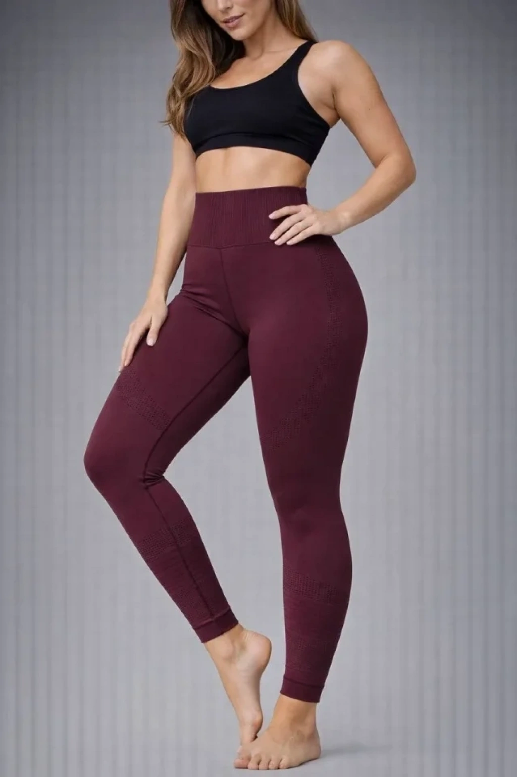 Nonofit Yüksek Bel Full Extra Toparlayıcı Likralı Ön Arka Ve Bilek Desenli Tayt - Bordo