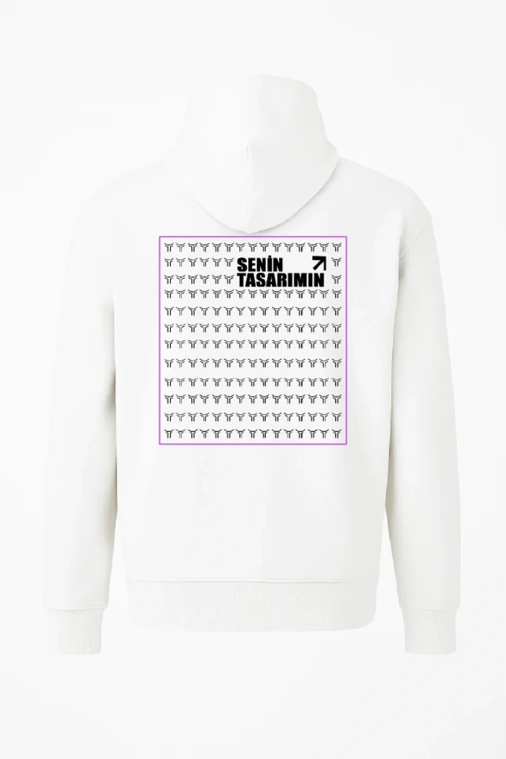 Erkek Oversize Üç İplik Kapüşonlu weatshirt –ırt Ve Ön Baskılı, Kanguru Cepli, Rahat Kalıp askot Desenli odel iyah Beyaz