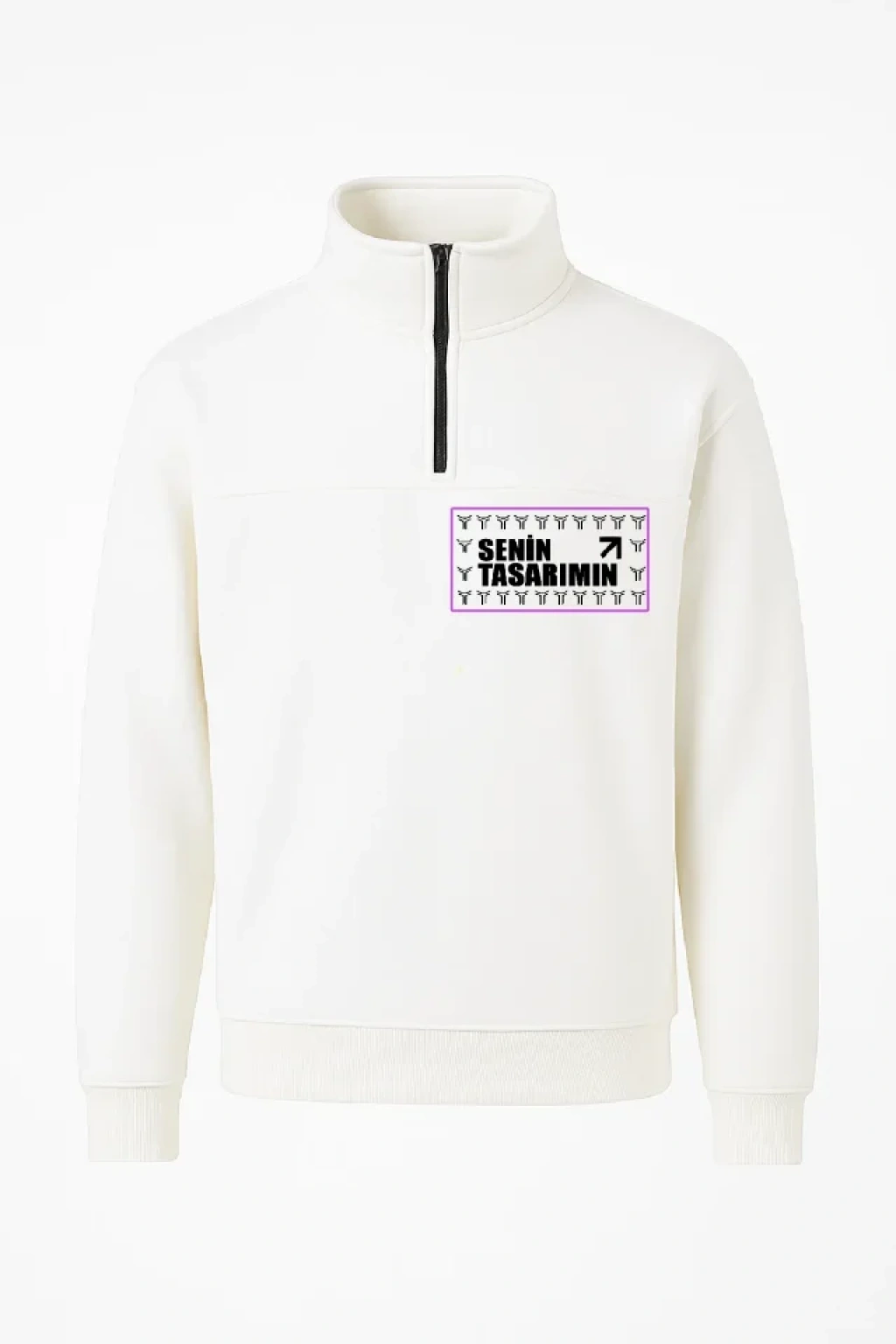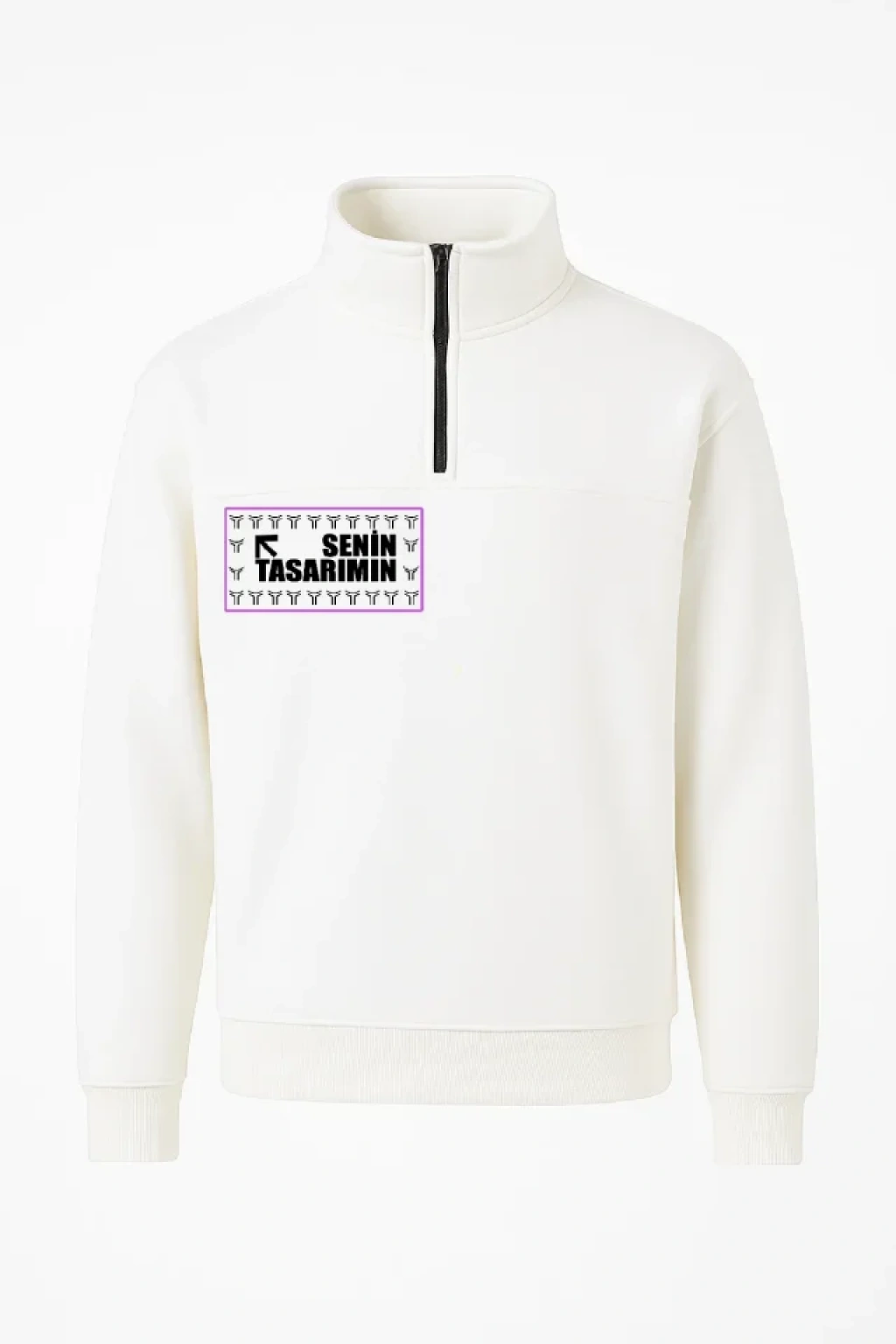 Ön Arka Yarım Fermuarlı Oversize Yakalı Basic weathirt Beyaz
