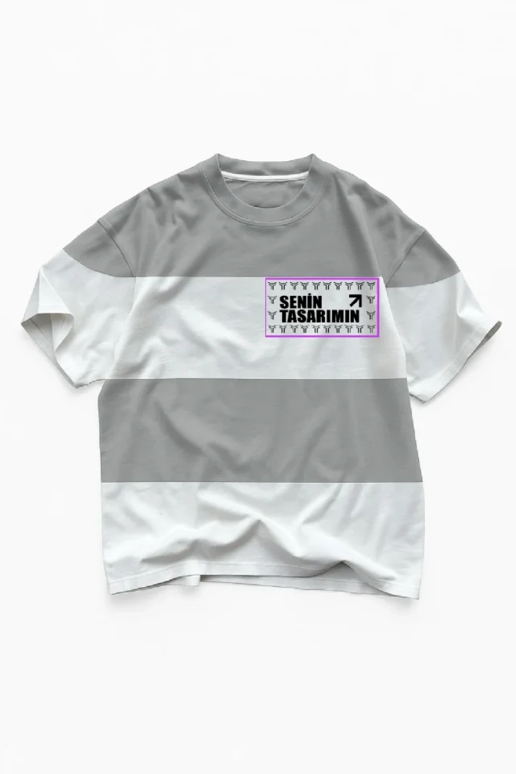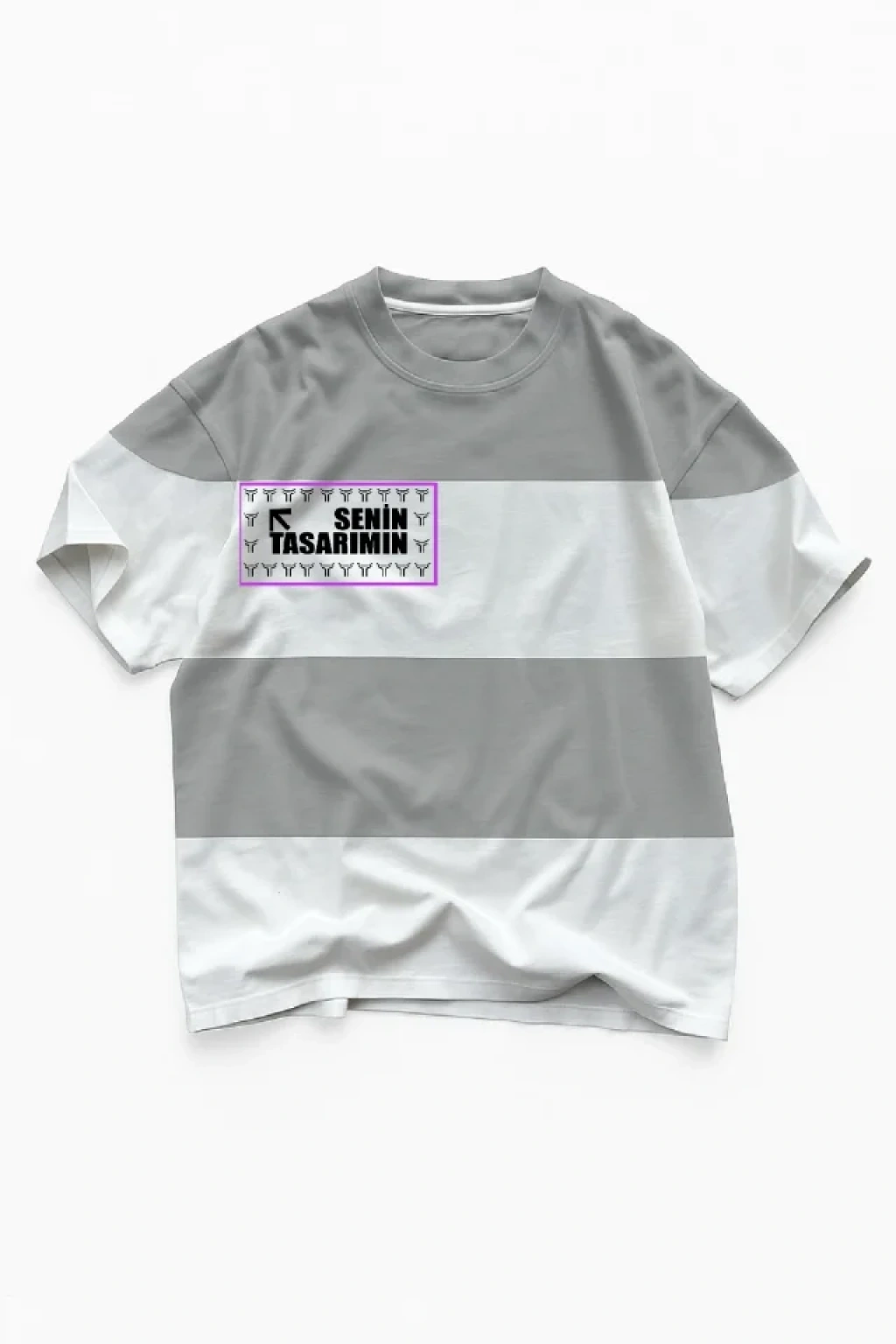 Ön Parçali İki İplik Oversize Tişört - Gri