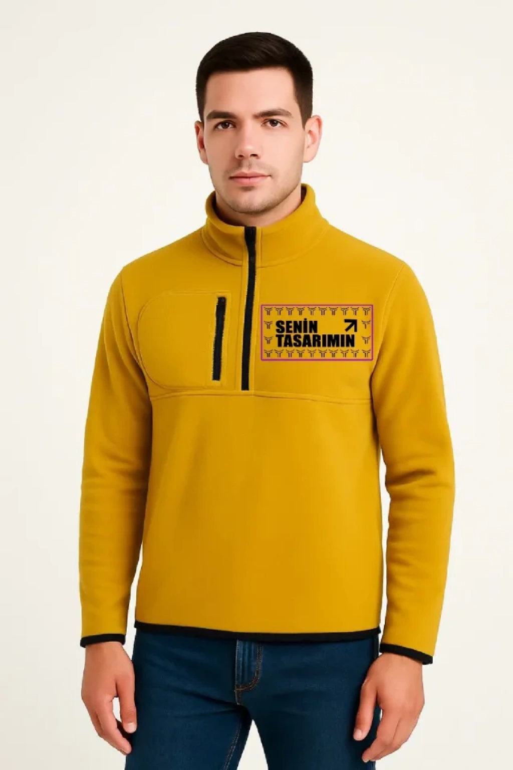Ön Polar Kazak Dik Yaka - Sarı