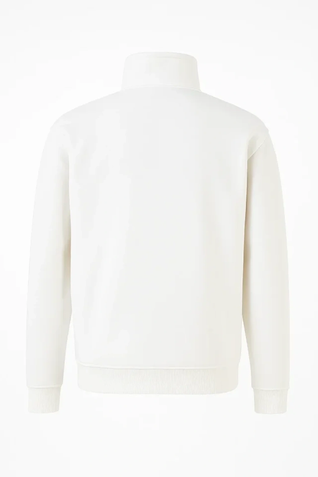 Ön Yarım Fermuarlı Oversize Yakalı Basic weathirt Beyaz