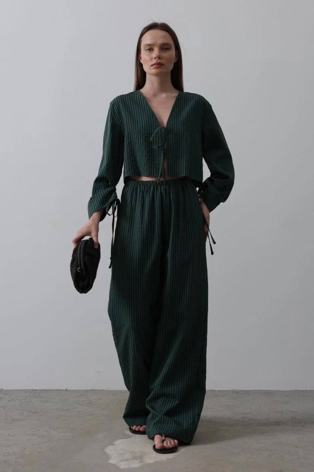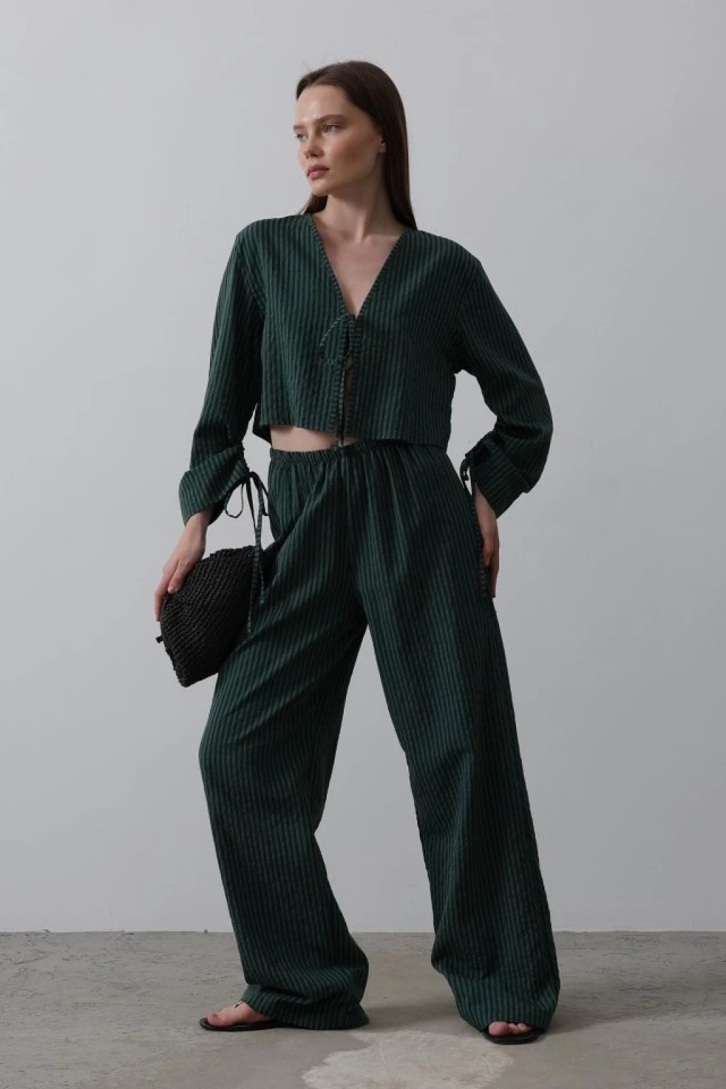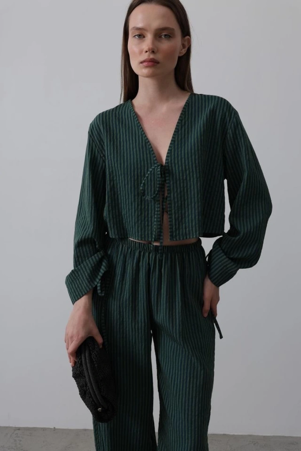Önü Bağlamalı Crop Takım - Yeşil
