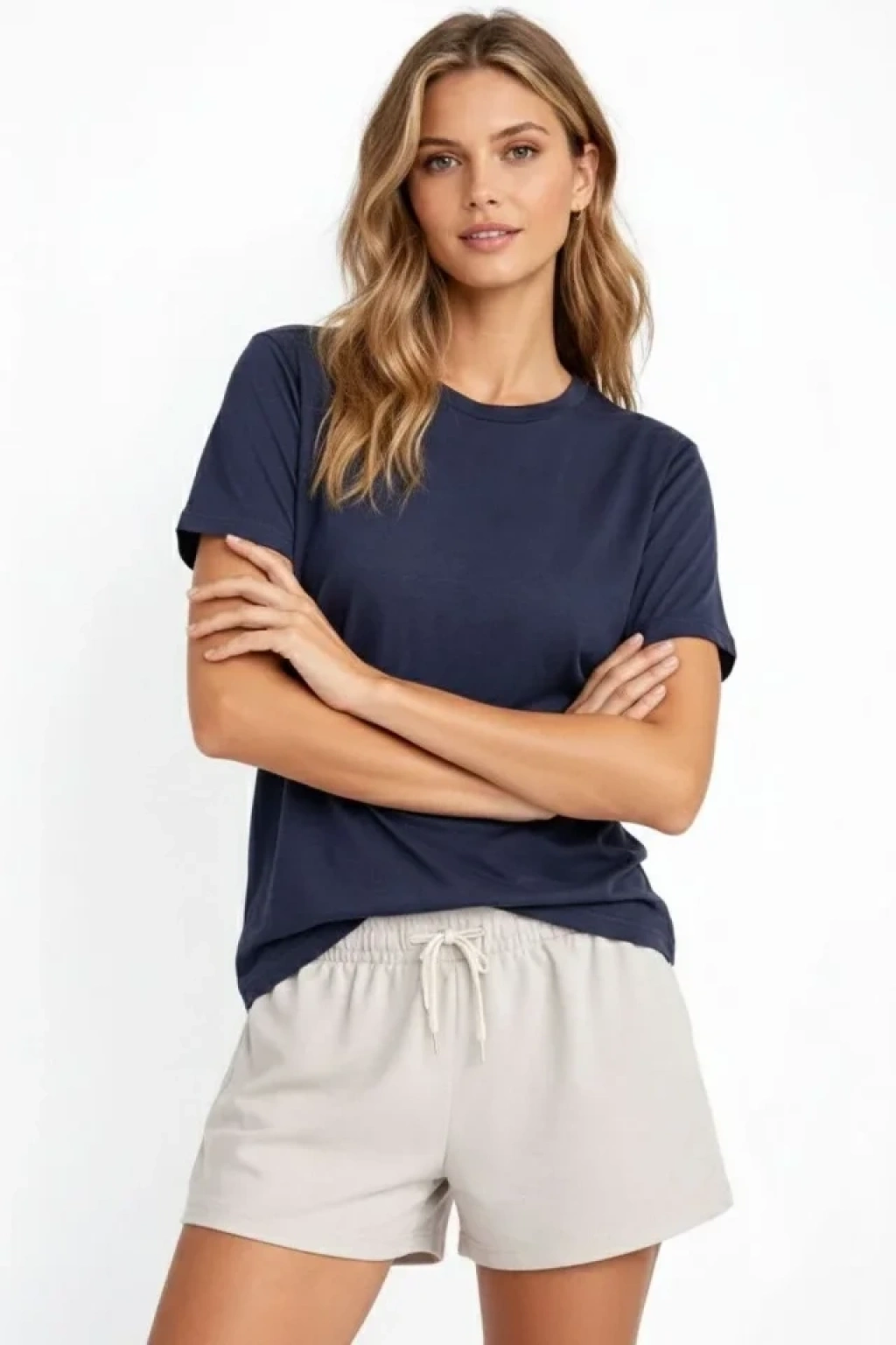 Osy Modal Yumuşak Dokulu Kumaş Bisiklet Yaka T-shirt - İndigo