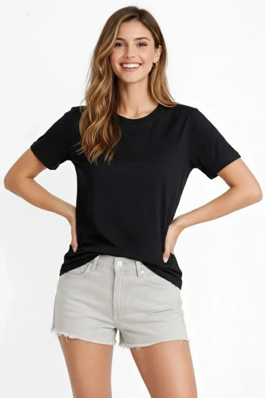 Osy Modal Yumuşak Dokulu Kumaş Bisiklet Yaka T-shirt - Siyah