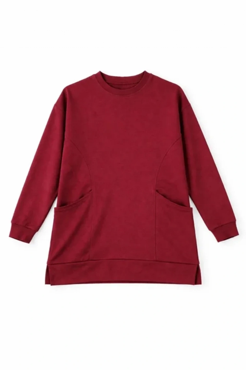 Osy Modal Yumuşak Dokulu Kumaş Tesettür Cepli Tunik Pantolon Takım - Bordo