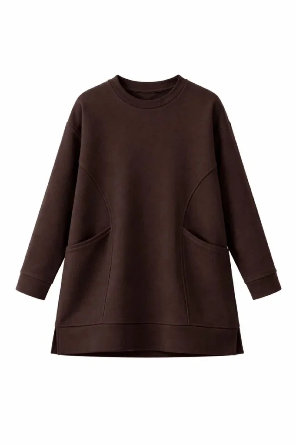 Osy Modal Yumuşak Dokulu Kumaş Tesettür Cepli Tunik Pantolon Takım - Kahverengi