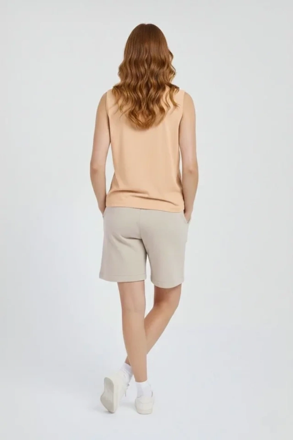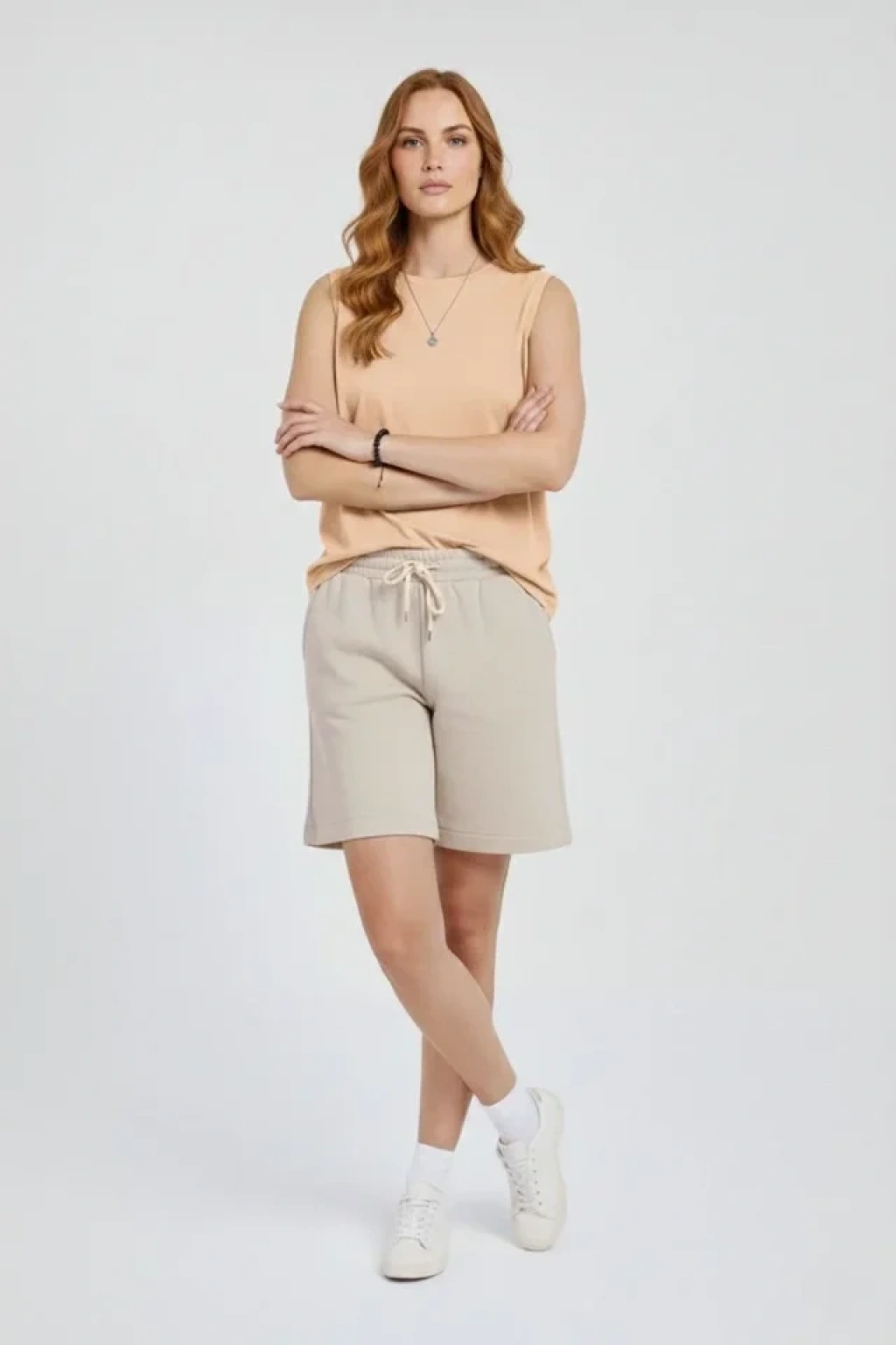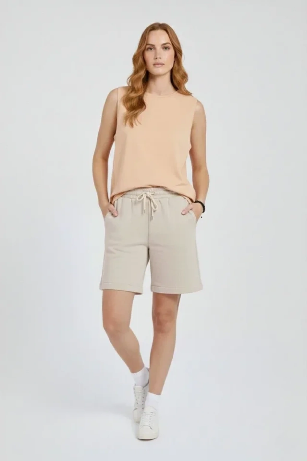 Oversize Atlet Salaş Kalıp Bisiklet Yaka Basic Yazlık Spor Bluz - Bej