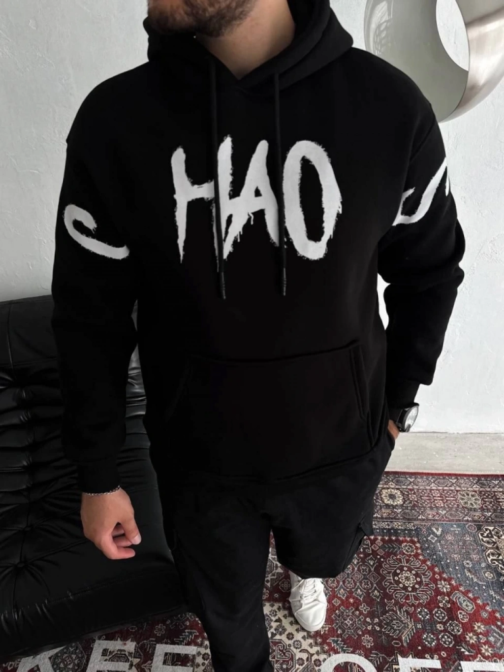 evgililer Günü Özel Kapüşonlu Beyci Baskılı Oversize weatshirt iyah