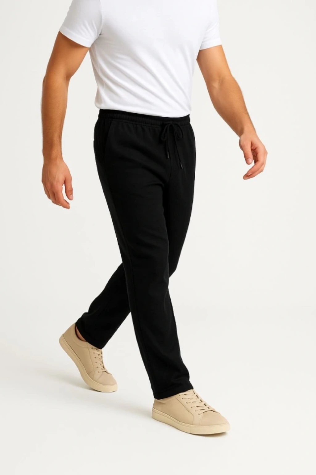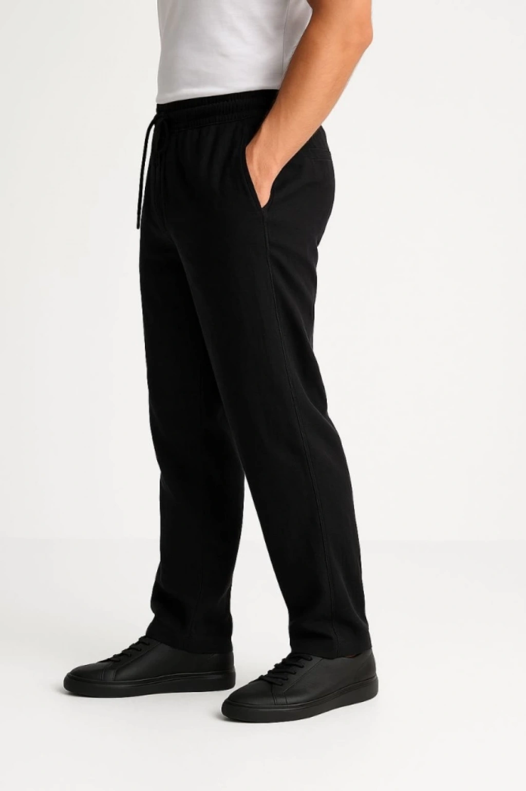 Erkek Keten Pantolon – Cepli, Beli Lastikli Ve Bağcıklı, Nefes Alan Rahat Kalıp, Yazlık Ve Baharlık Günlük Giyim, Şık - Konforlu Boru Paça Model - Siyah