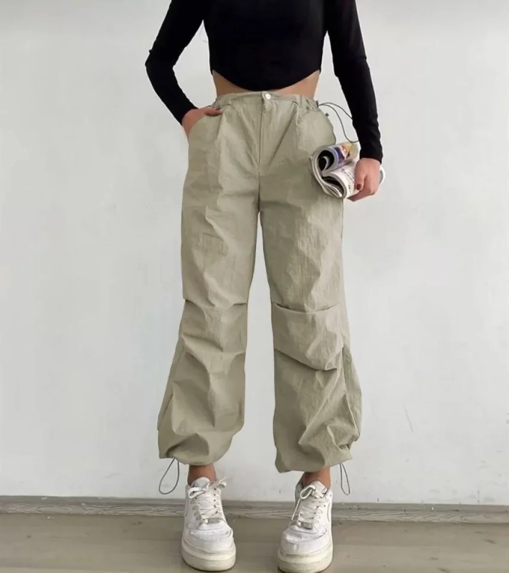 Paraşüt Kumaş Beli Lastikli Pantalon-Taş