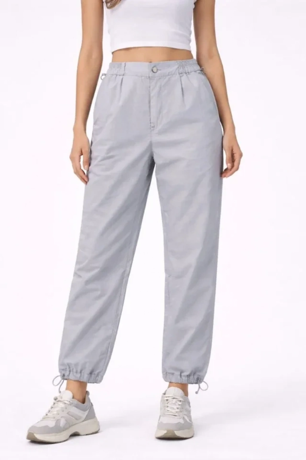 Paraşüt Kumaş Pantolon Bel Ve Paça Ayarlanabilir Lastikli Spor Pantolon - Gri