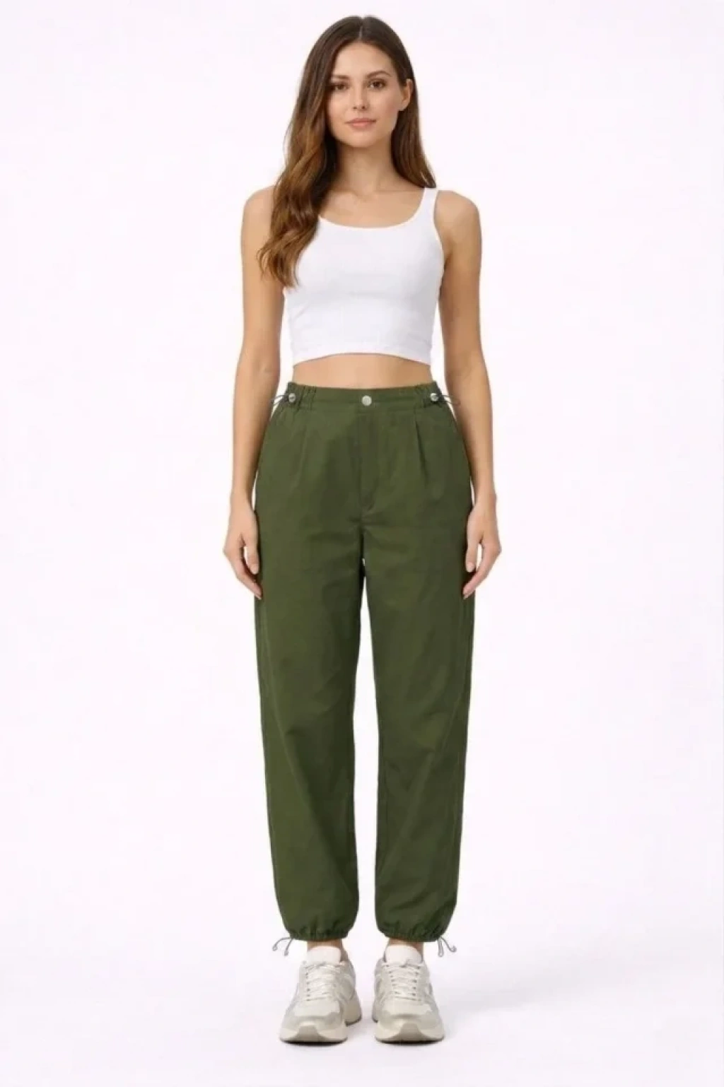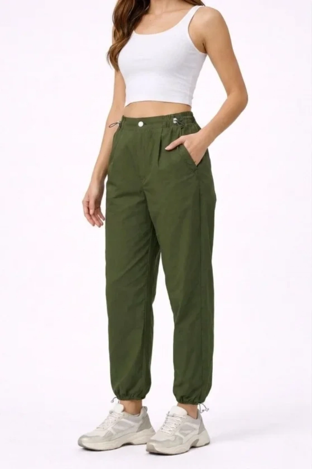 Paraşüt Kumaş Pantolon Bel Ve Paça Ayarlanabilir Lastikli Spor Pantolon - Haki