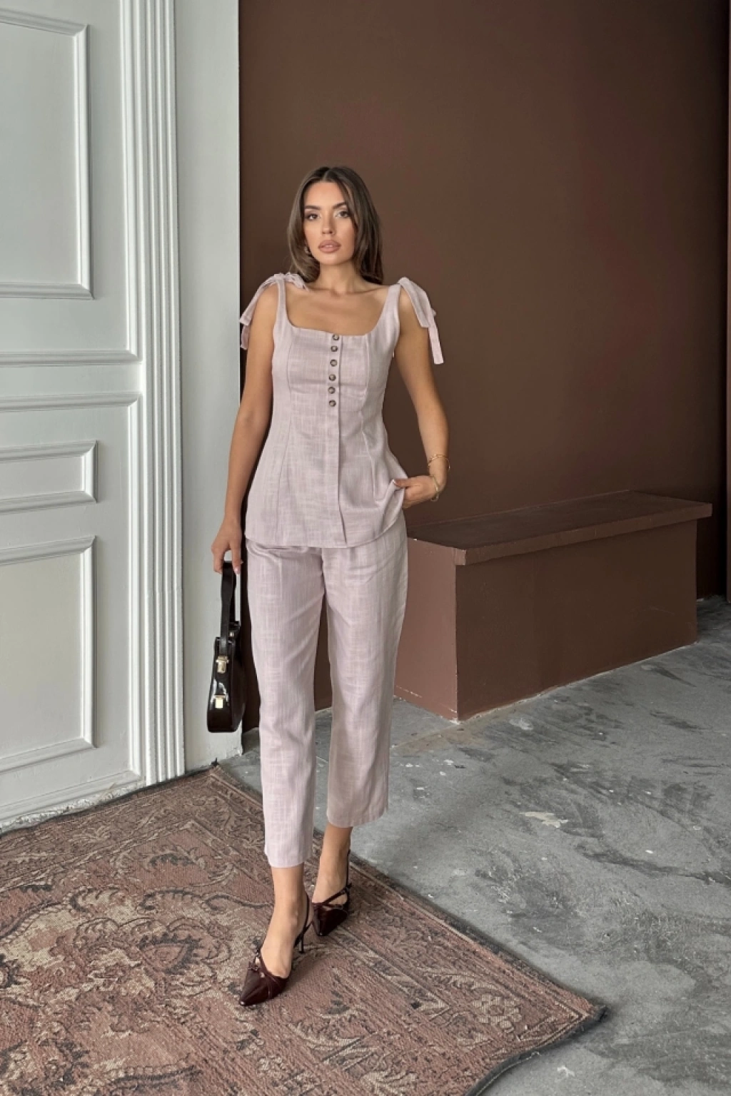 ŞANTUK KETEN YELEK GÖRÜNÜMLÜASKILI BLUZ - PANTOLON TK - Lila
