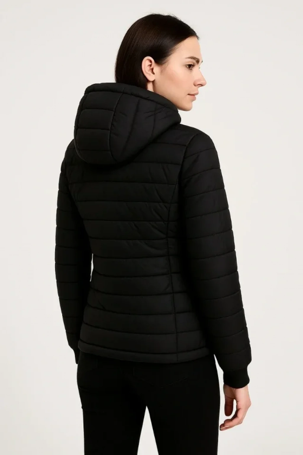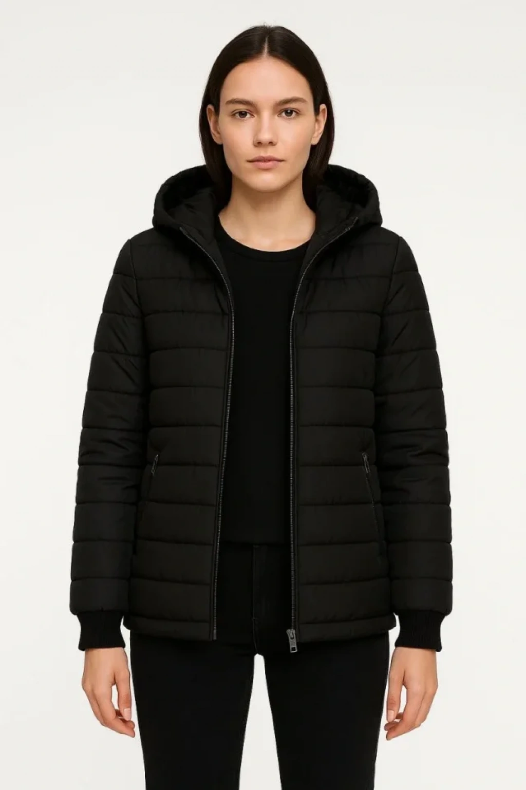 Şişme Kapüşonlu Fermuarlı Mont Su Itici Kapitone Astarlı Kumaş Cepli Kışlık Rahat Kalıp - Siyah