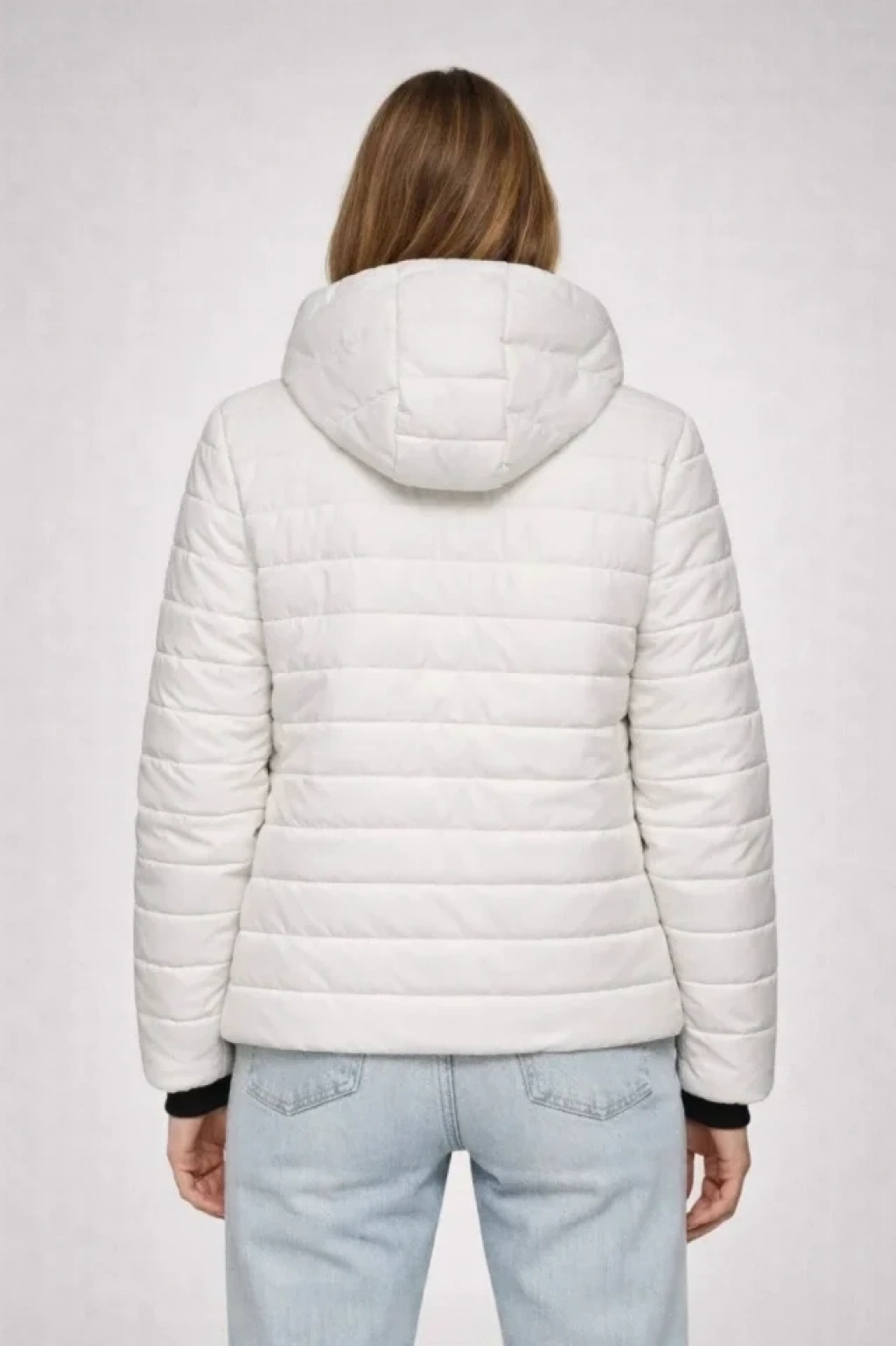 Şişme Kapüşonlu Fermuarlı Mont Su Itici Kapitone Astarlı Kumaş Cepli Kışlık Rahat Kalıp - Krem
