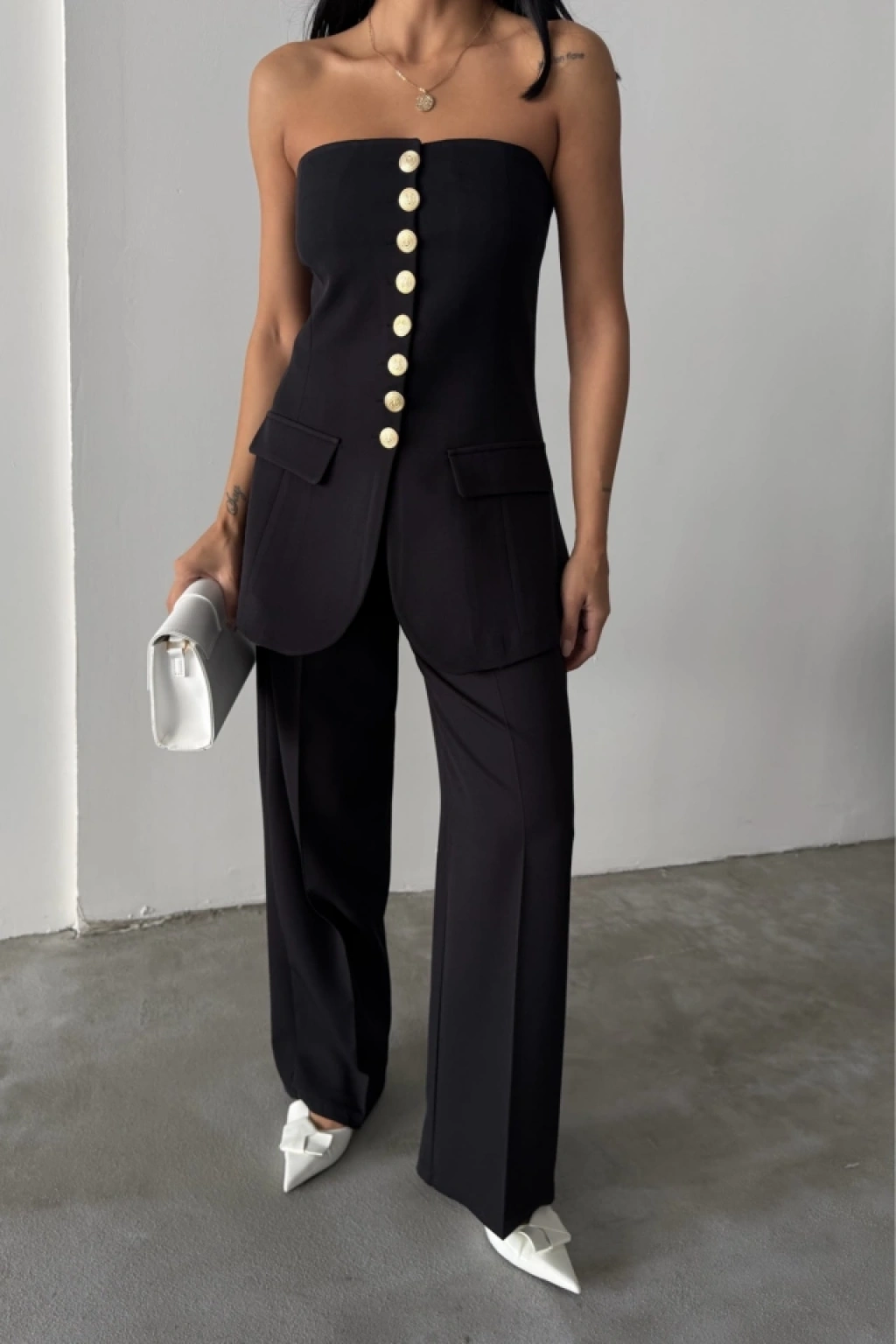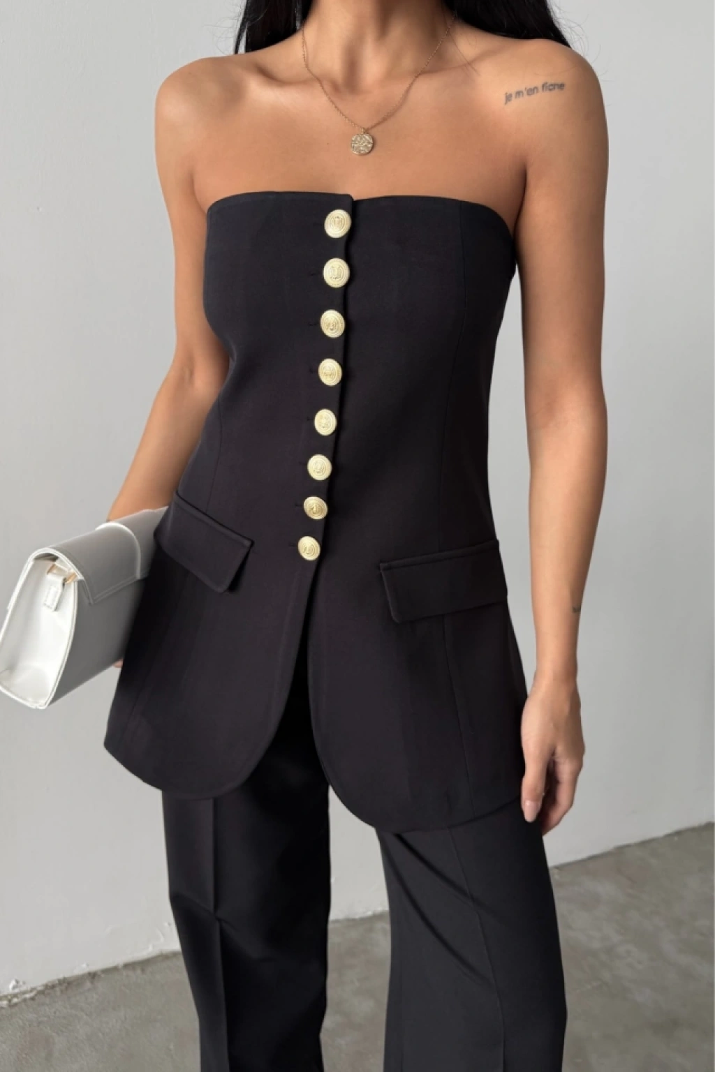 TASARIM GOLD DÜĞMELİ STRABLEZYELEK - Siyah