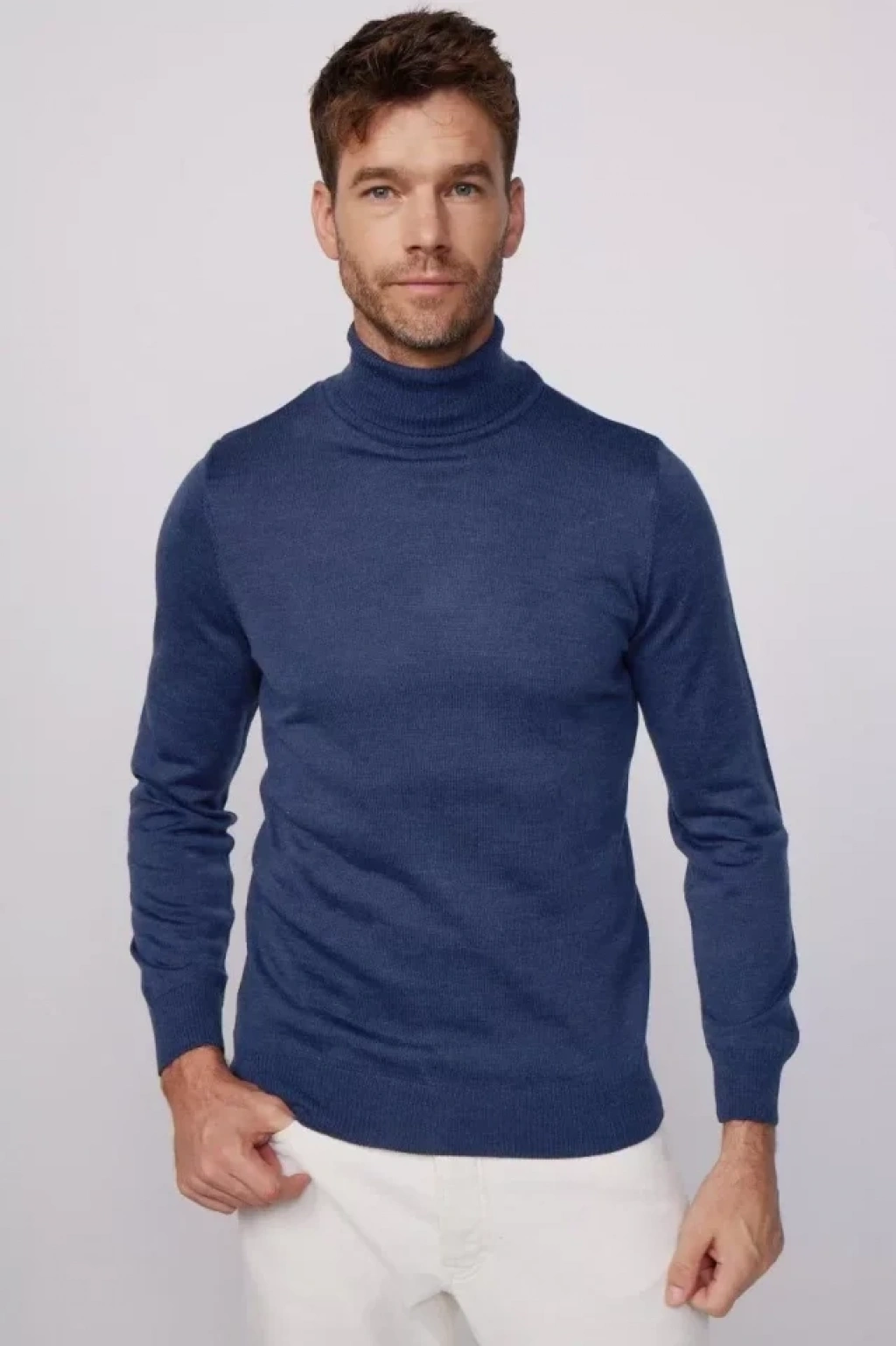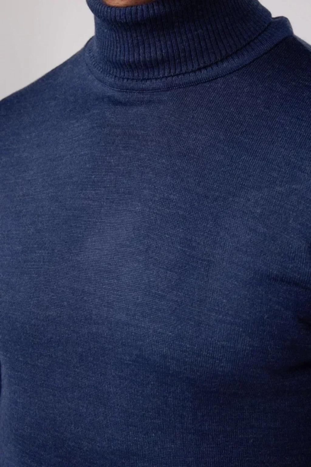 Tam Boğazlı Balıkçı Yaka Dokuma Triko - İndigo