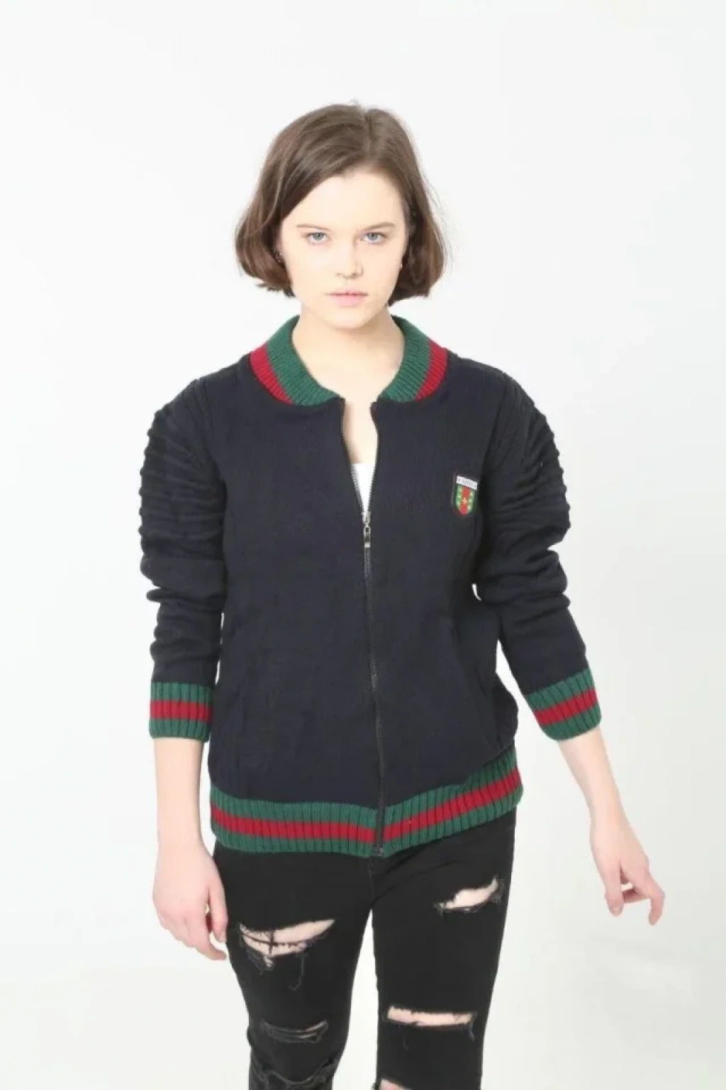 Tam Fermuarlı Triko Hırka acivert