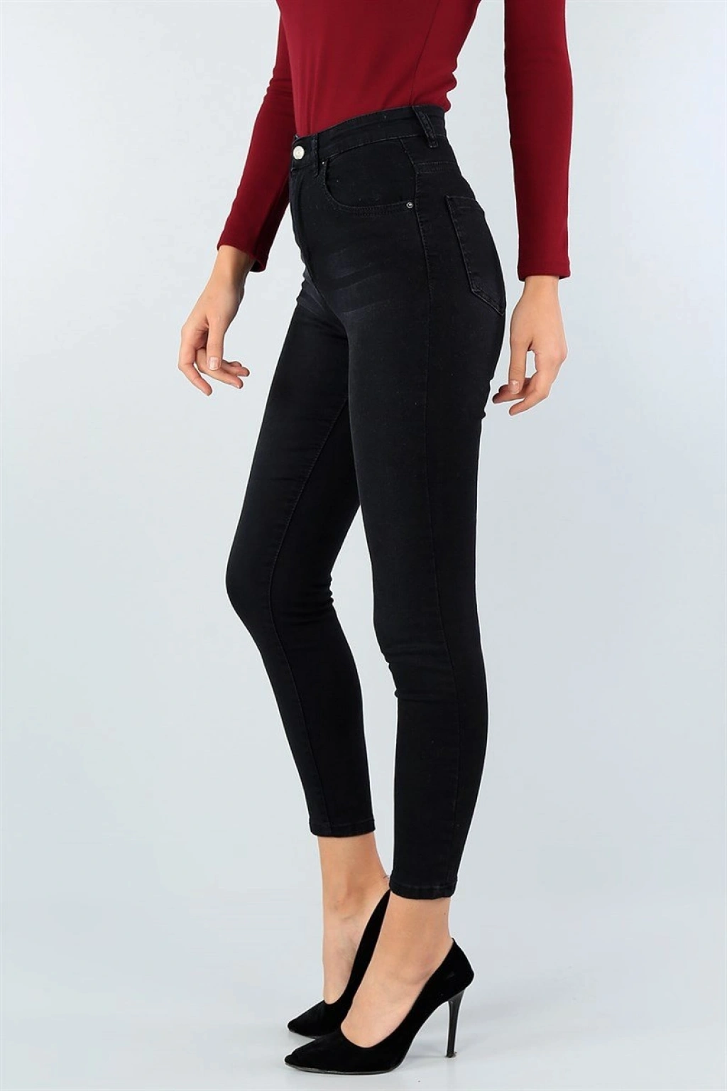 Tırnaksız Işlemli Yüksek Bel Kot Pantolon