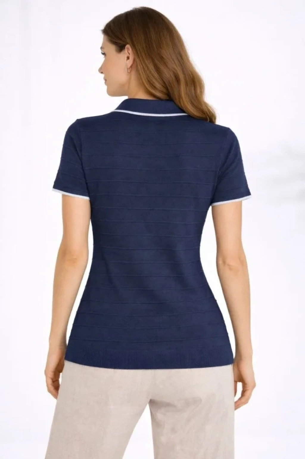 Triko Kumaş Yakalı Düğmesiz Açık Yaka Fitilli Kısa Kollu Regular Fit Tişört T-shirt - Lacivert