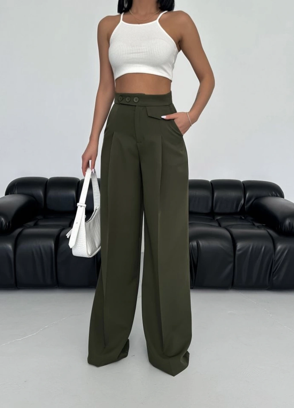 Üç Düğme Detayli Palazzo Pantolon