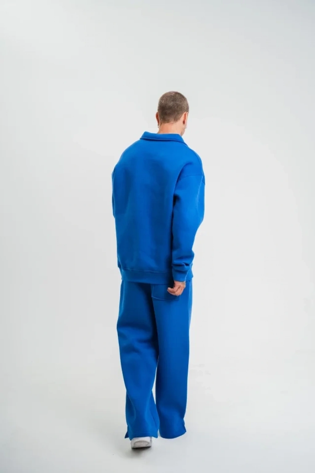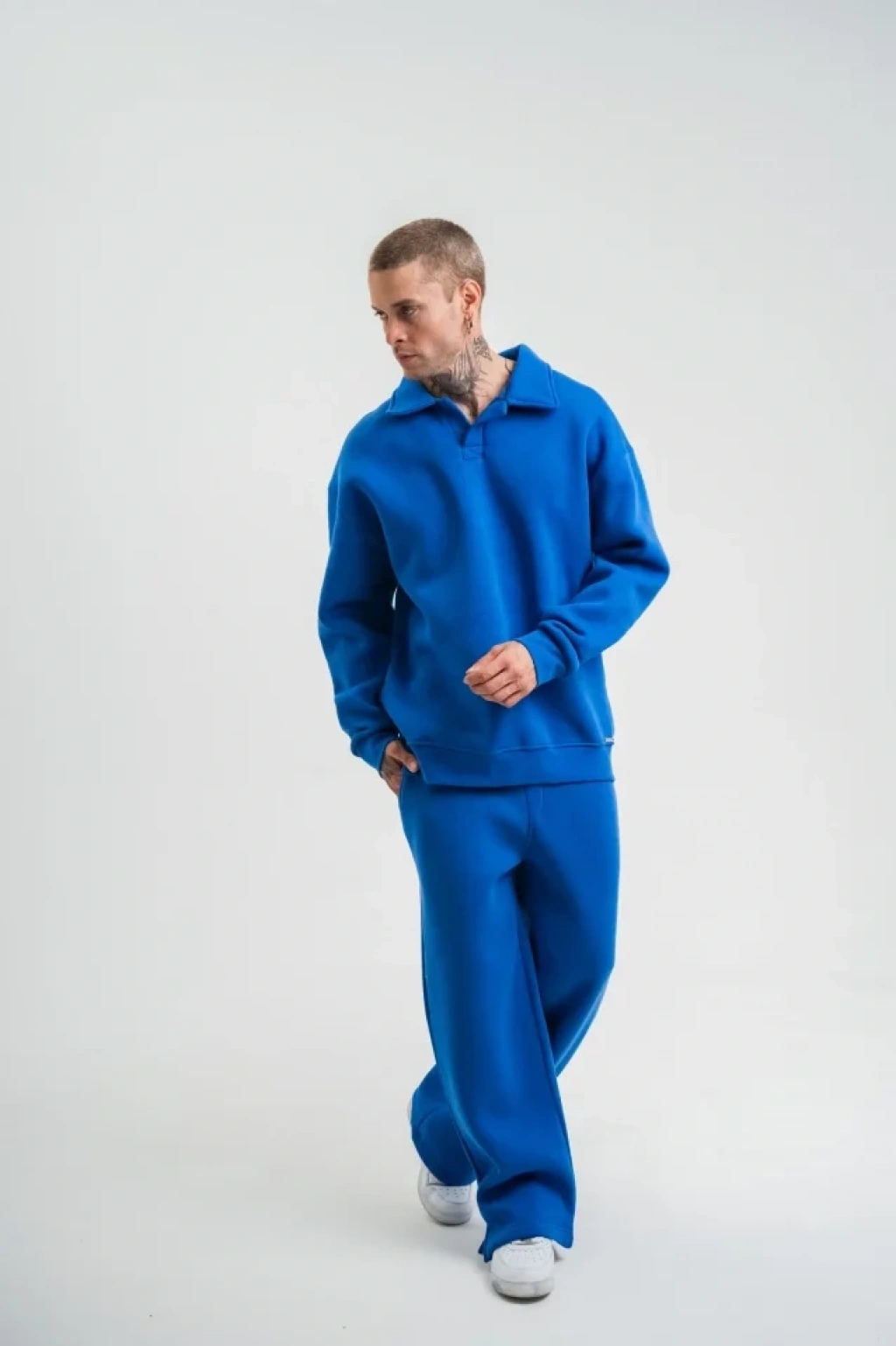 Üç İplik Uzun Kol Yakalı Eşofman Takım - Mavi