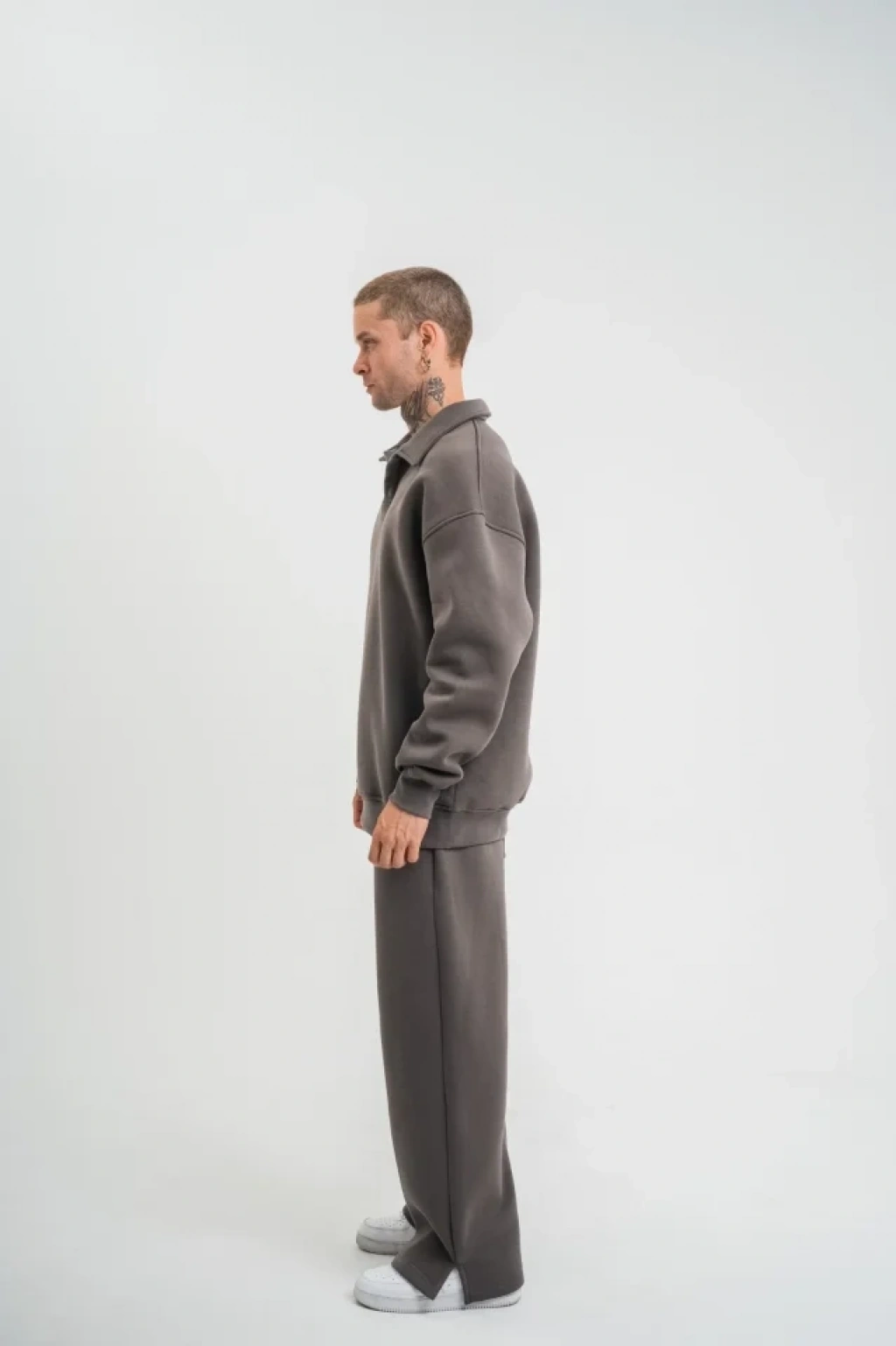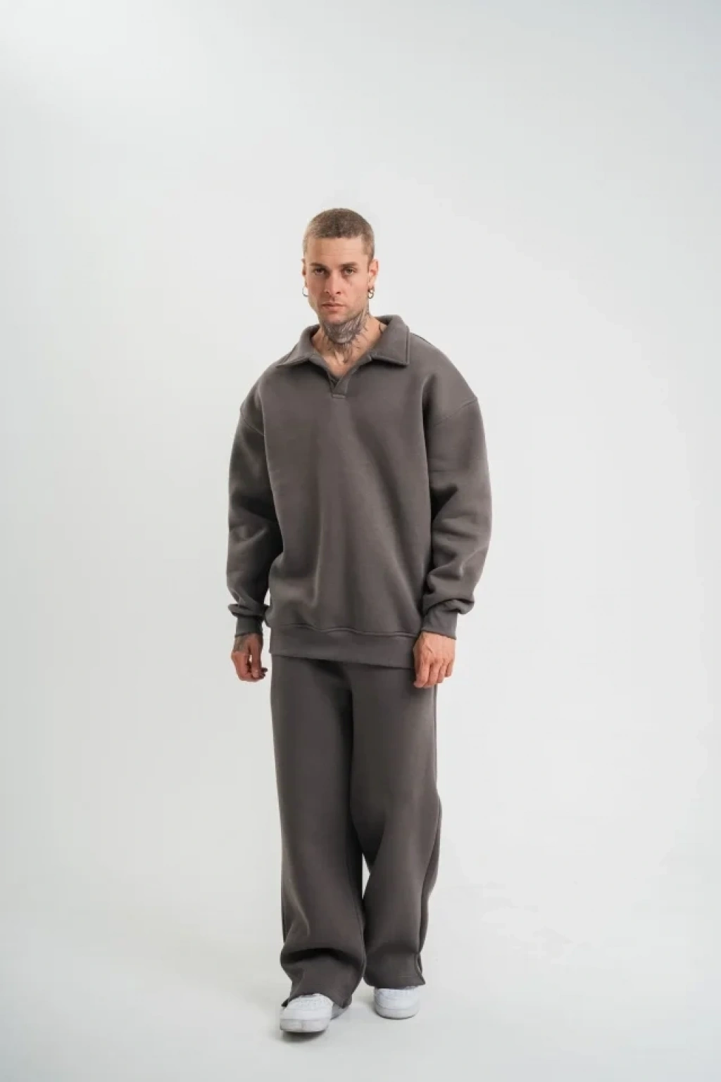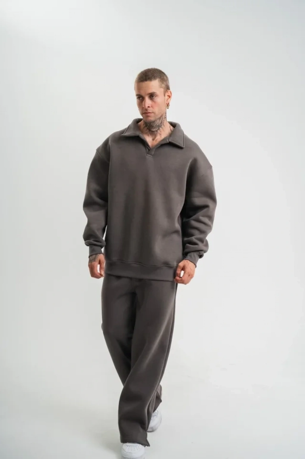 Üç İplik Uzun Kol Yakalı Eşofman Takım Füme