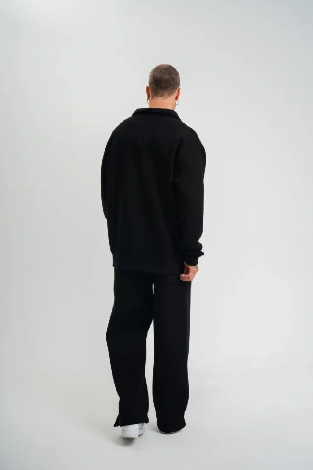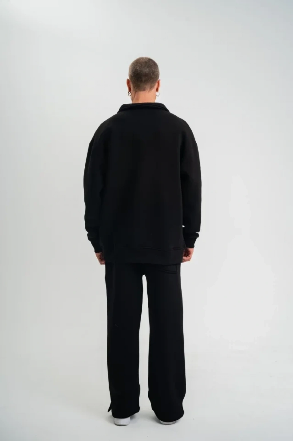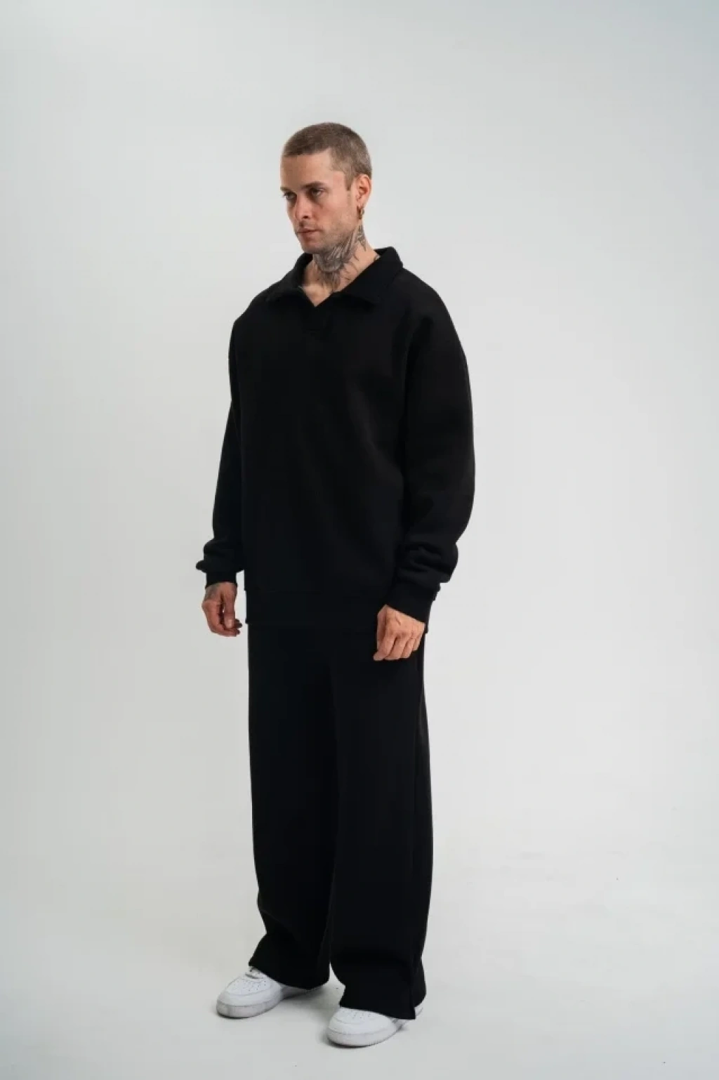 Üç İplik Uzun Kol Yakalı Eşofman Takım - Siyah