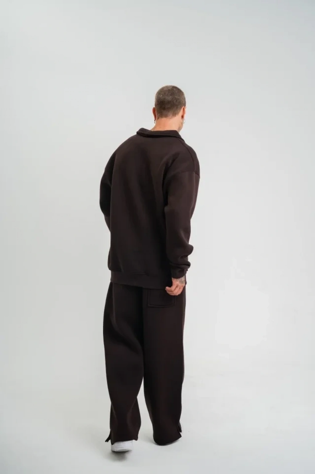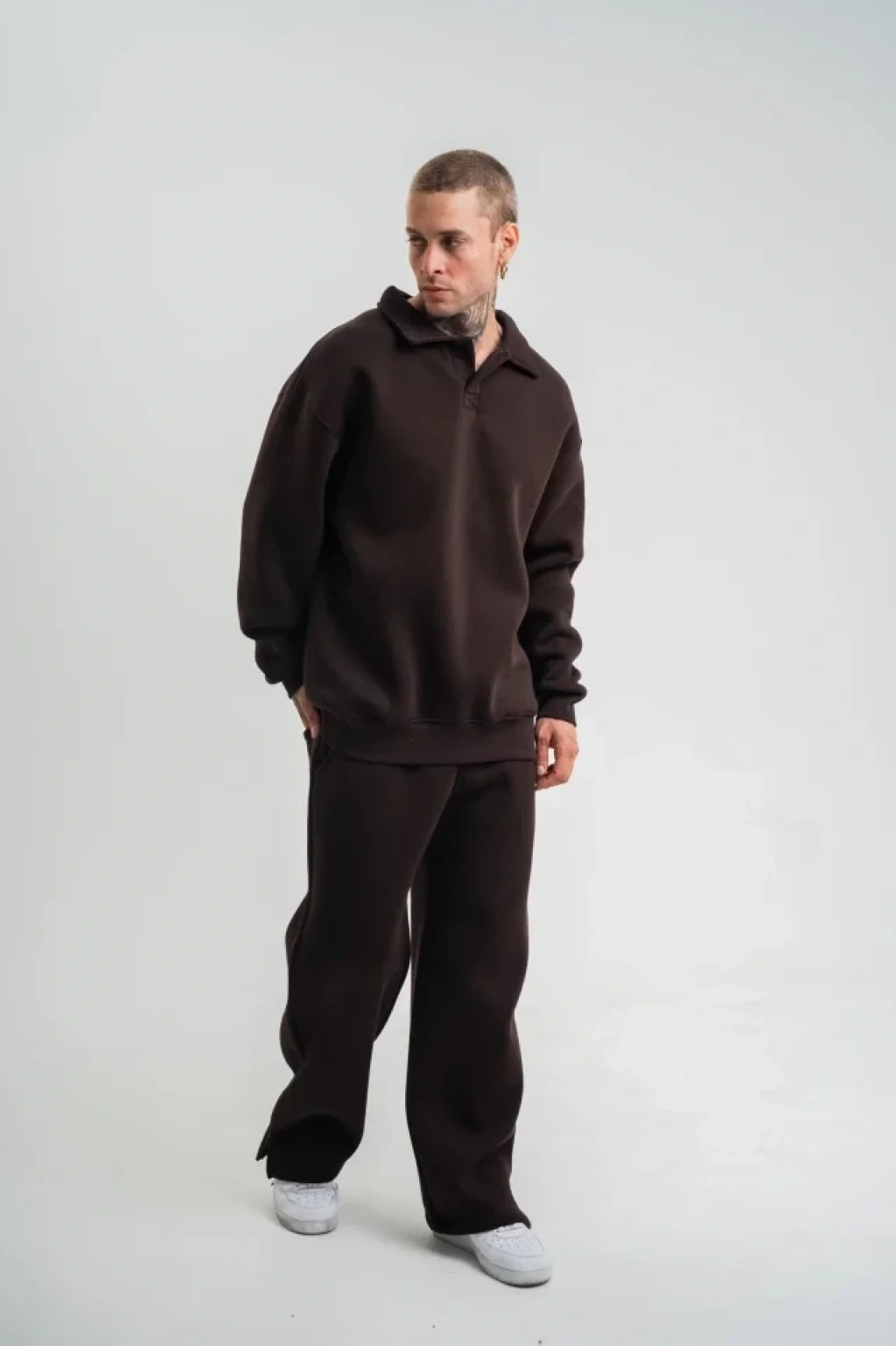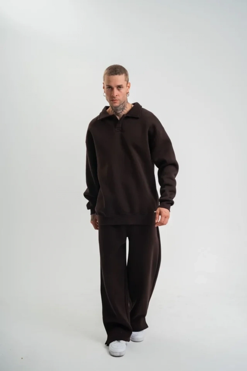 Üç İplik Uzun Kol Yakalı Eşofman Takım Kahve