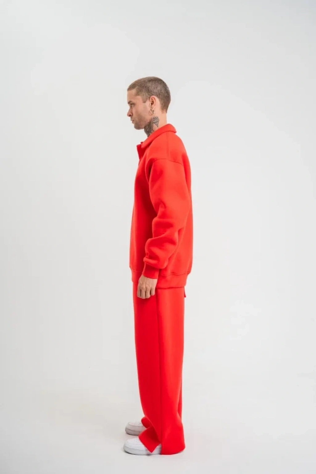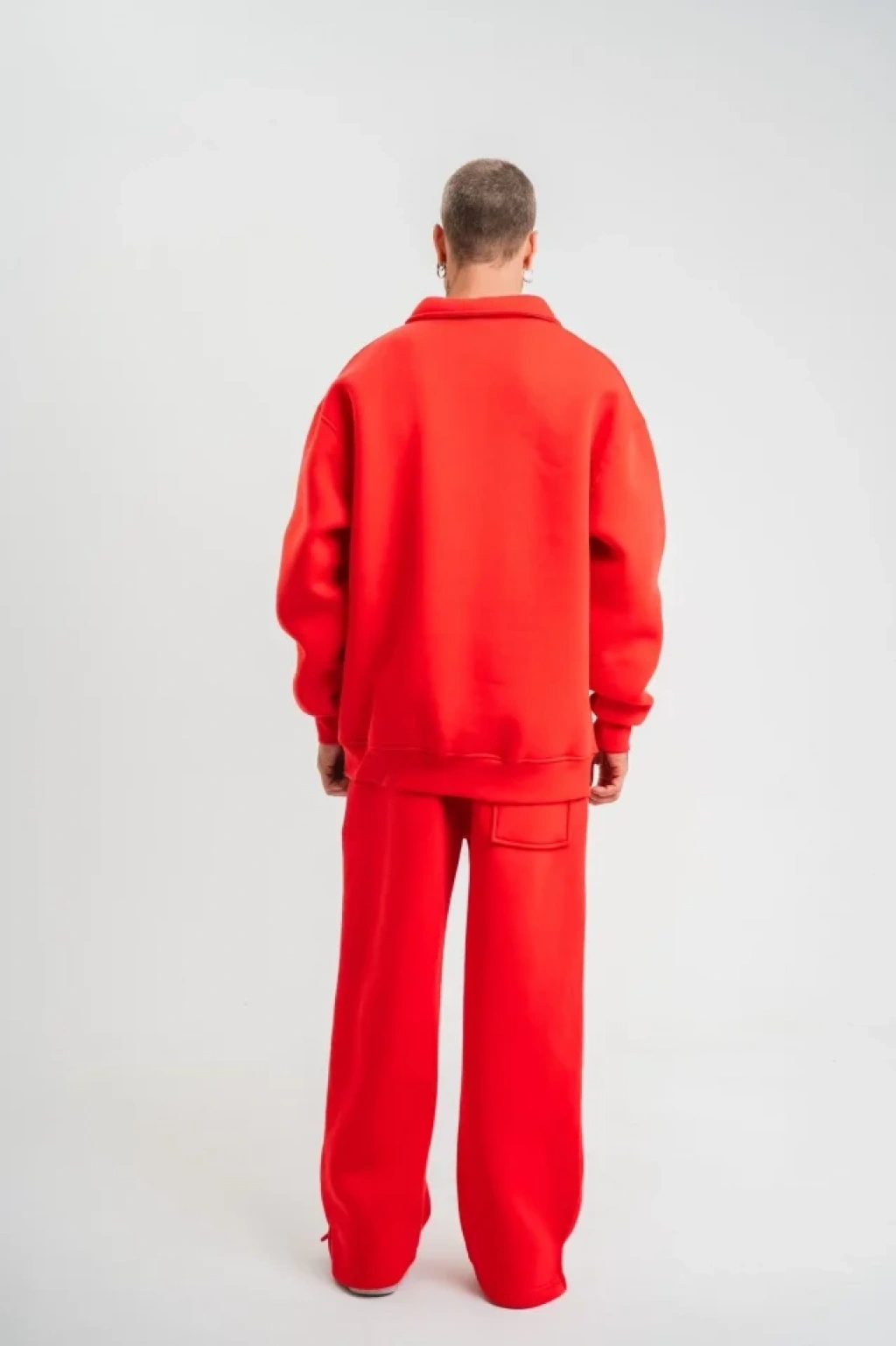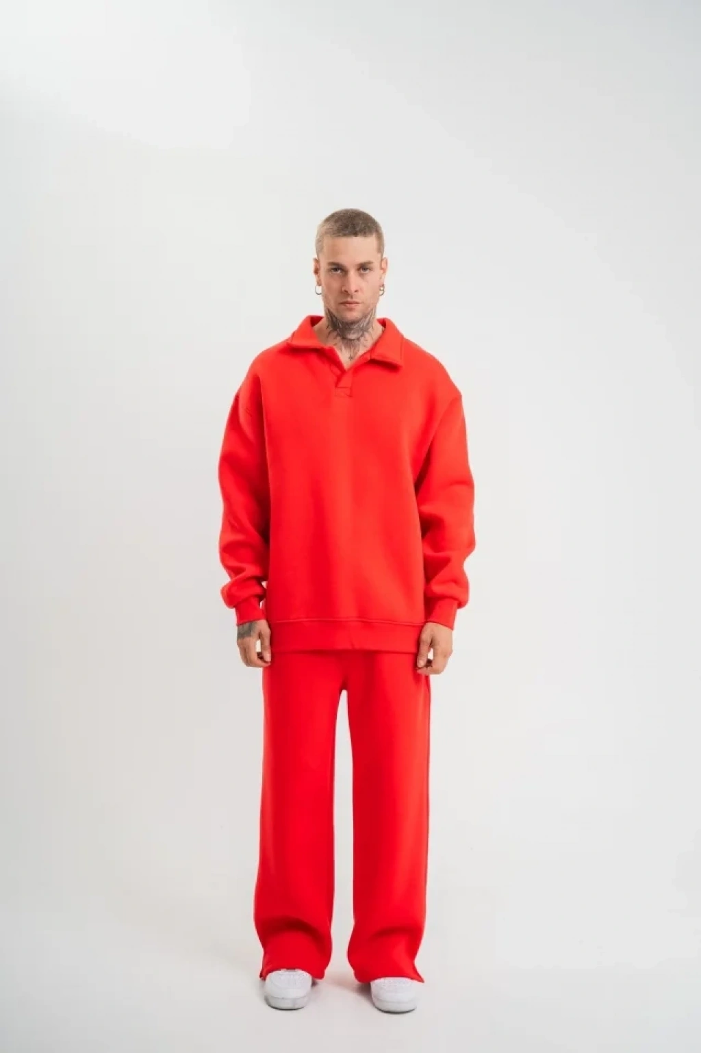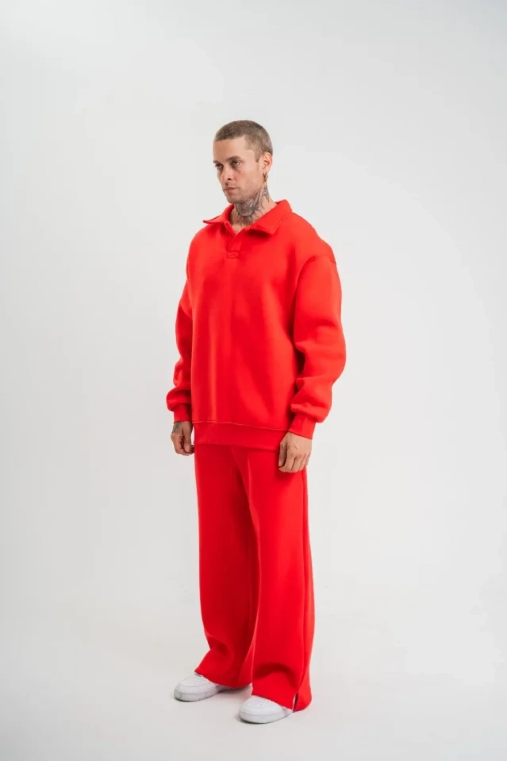 Üç İplik Uzun Kol Yakalı Eşofman Takım Kırmızı
