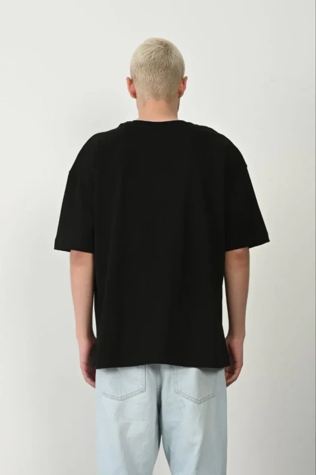 Erkek Asit Yıkama Bisiklet Yaka Kısa Kollu Oversize Thirt Tişört iyah