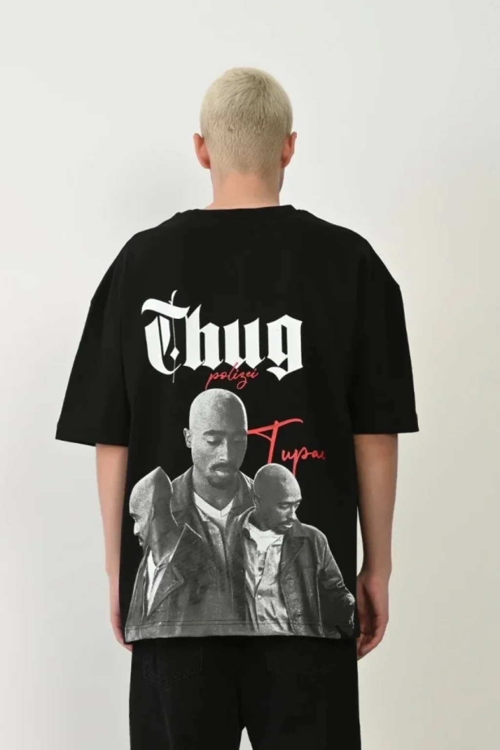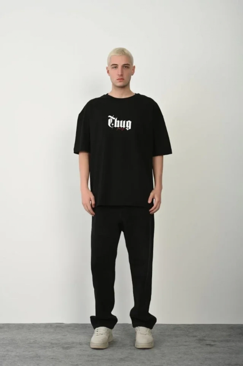 Erkek Asit Yıkama Bisiklet Yaka Kısa Kollu Oversize Thirt Tişört iyah